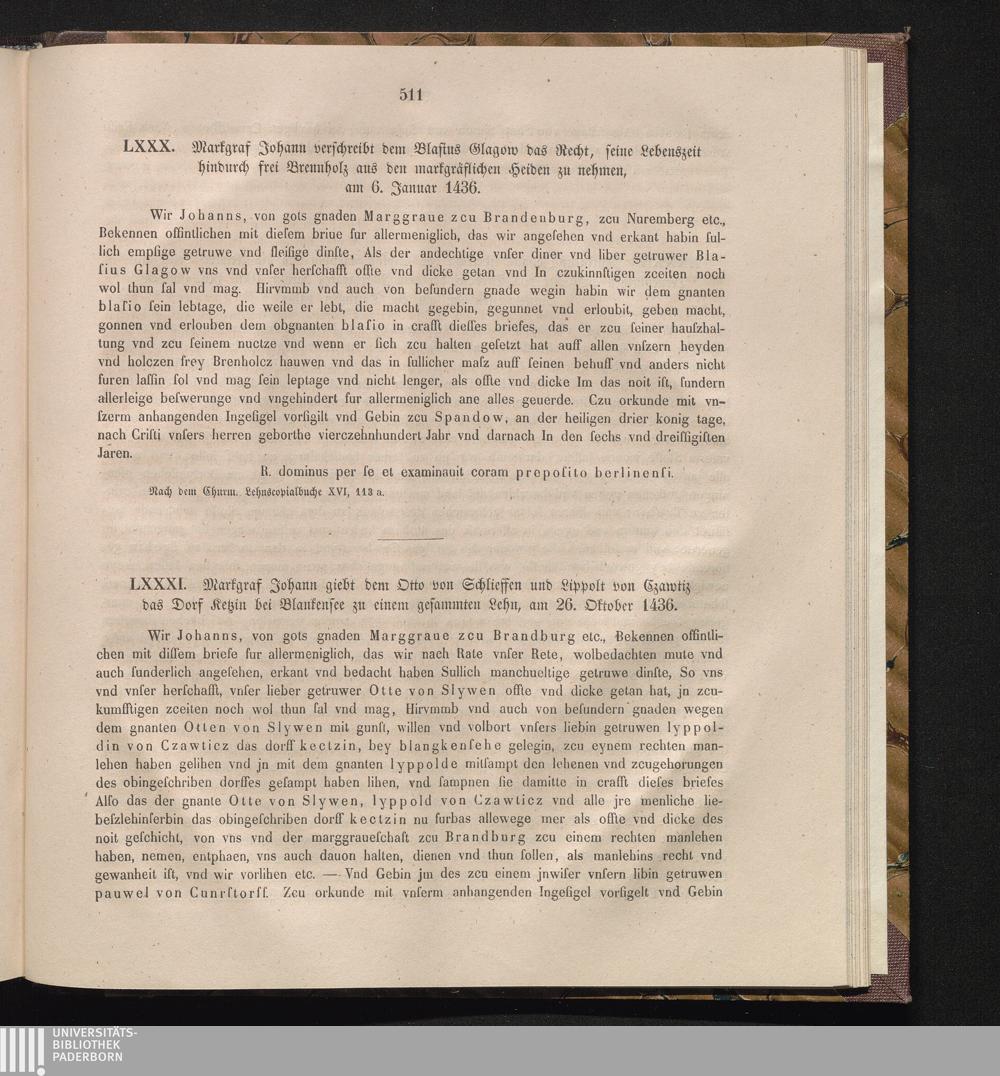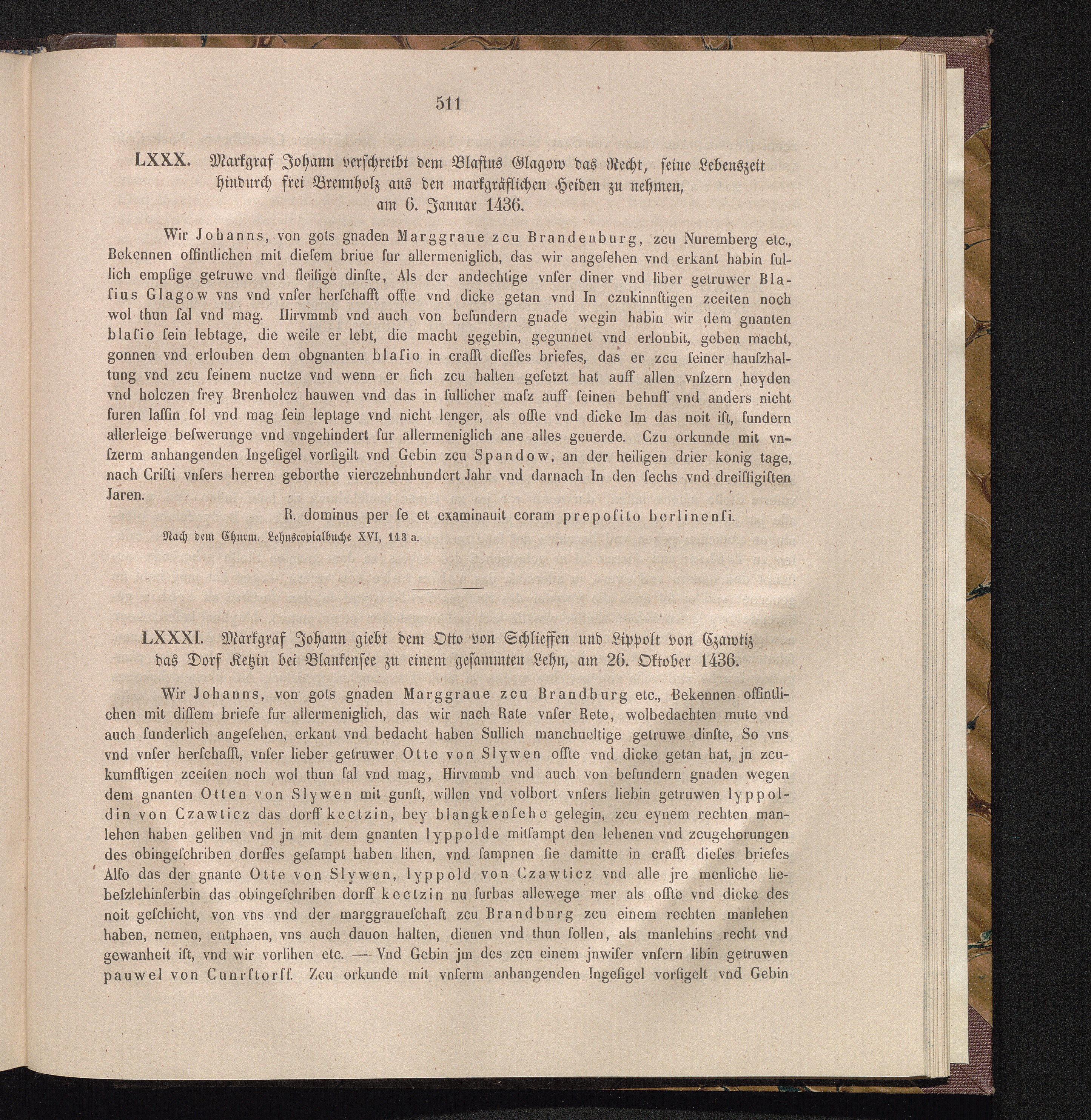 LXXXI. Markgraf Johann giebt den Otto von Schlieffen und Lippolt von Czawtiz des[...]