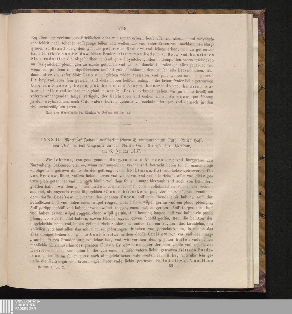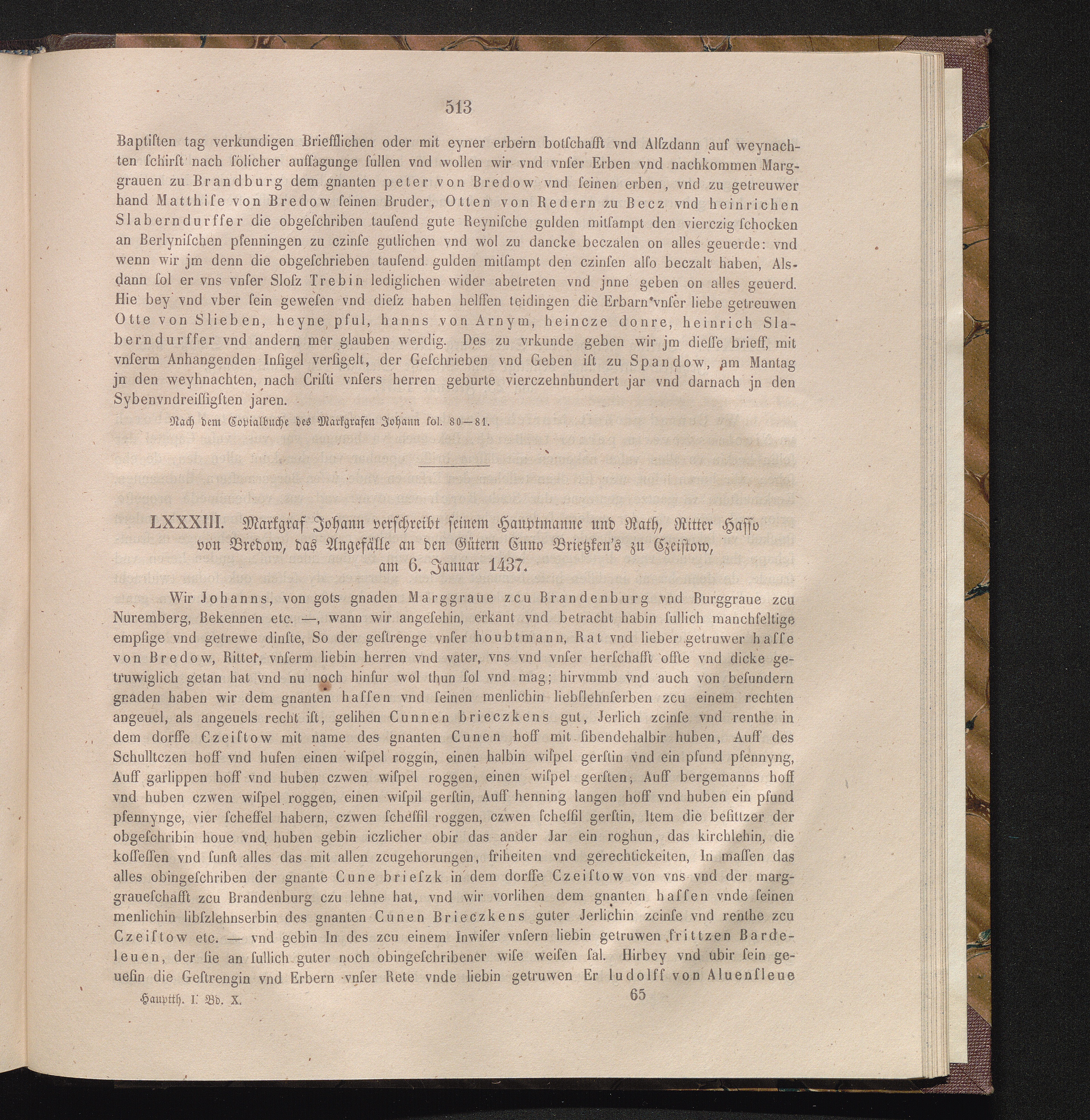 LXXXIII. Markgraf Johann verschreibt seinem Hauptmanne und Rath, Ritter Hasso von[...]