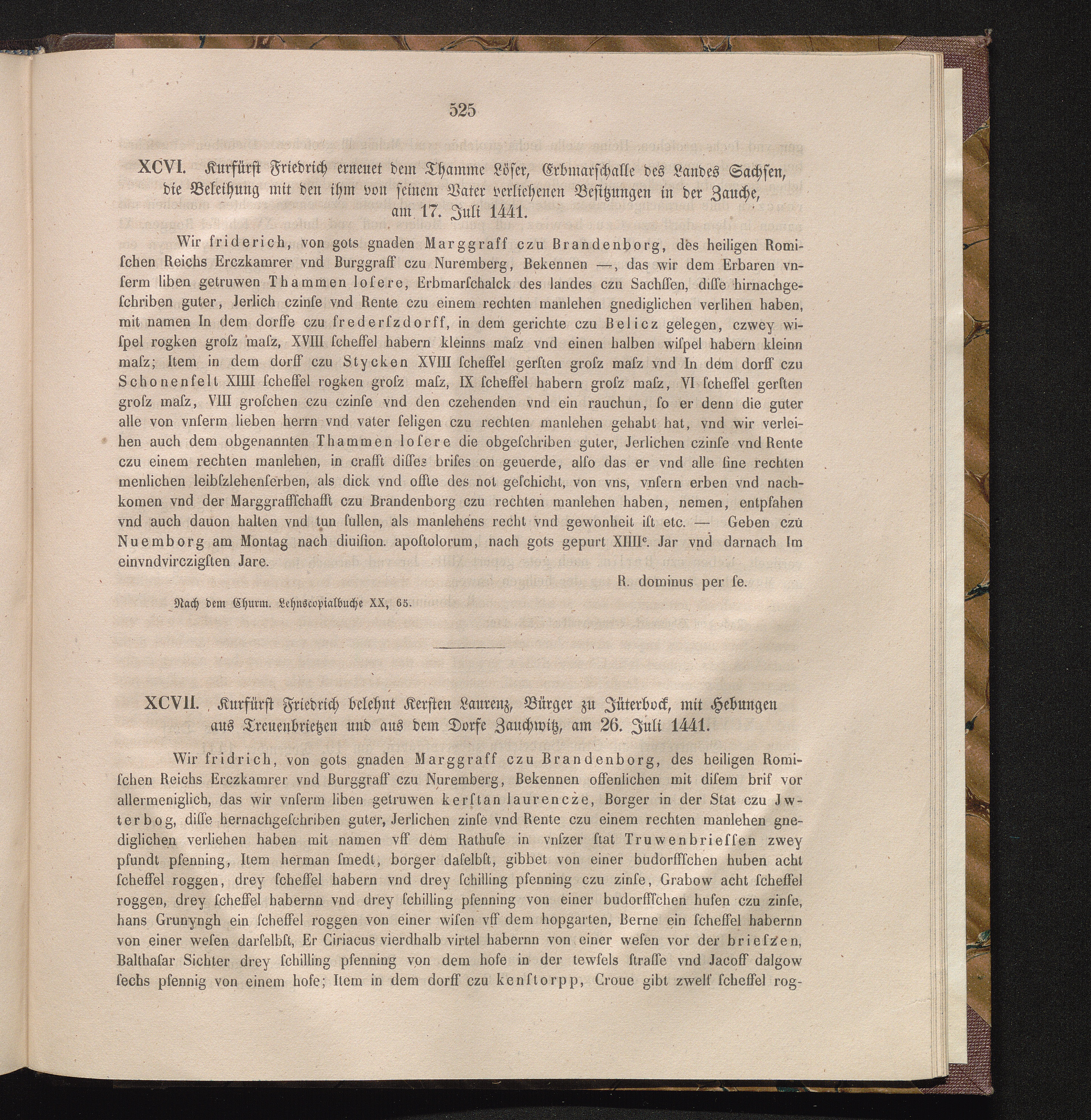 XCVII. Kurfürst Friedrich belehnt Kersten Laurenz, Bürger zu Jüterbock, mit Hebungen[...]