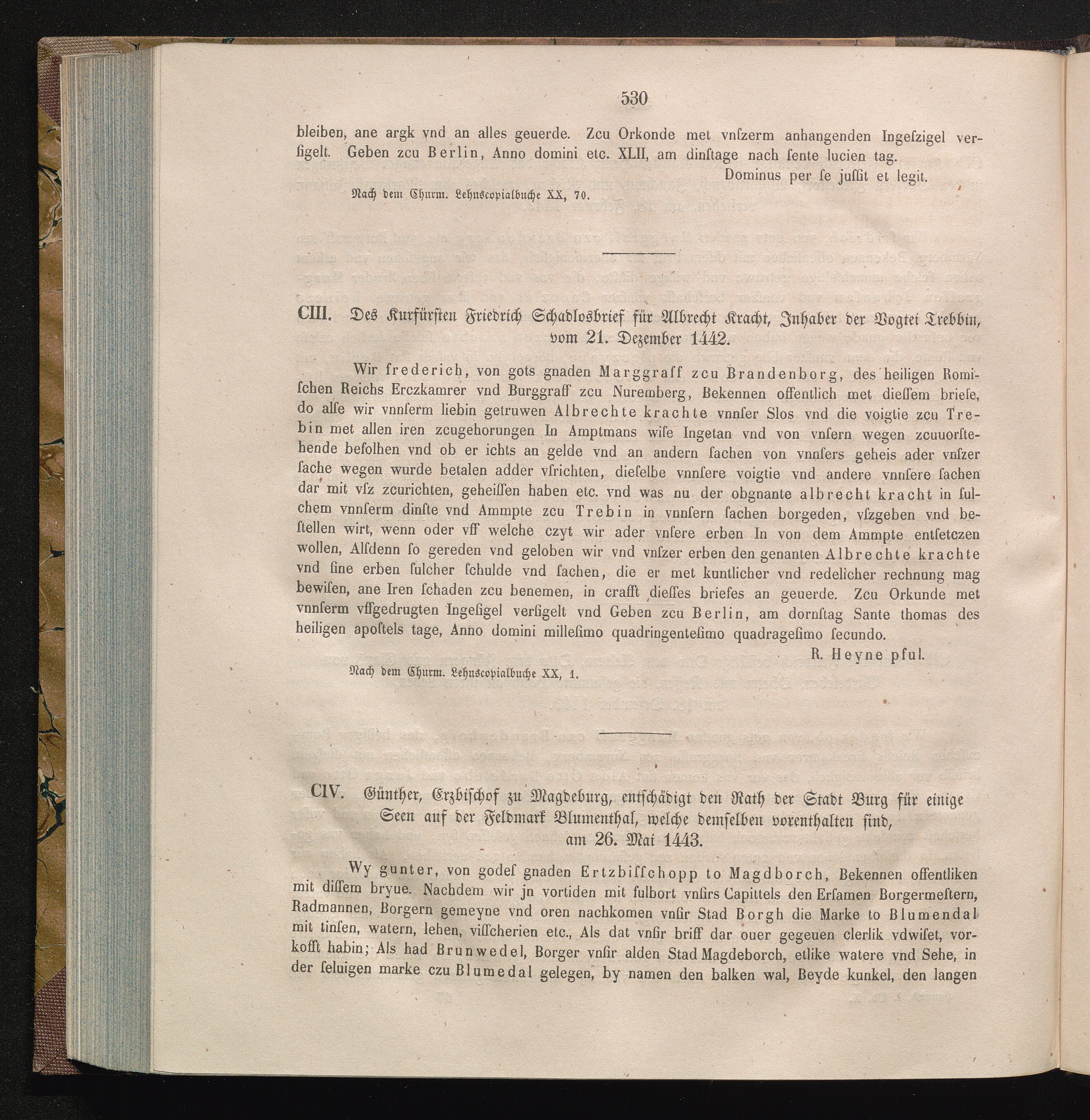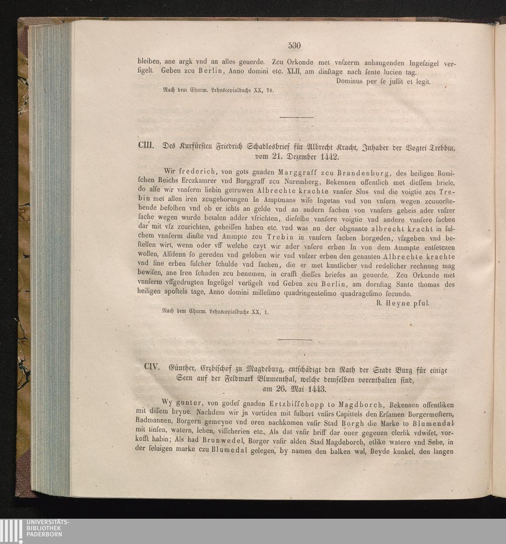 CIV. Günther, Erzbischof zu Magedburg, entschädigt den Rath der Stadt Burg für einige[...]
