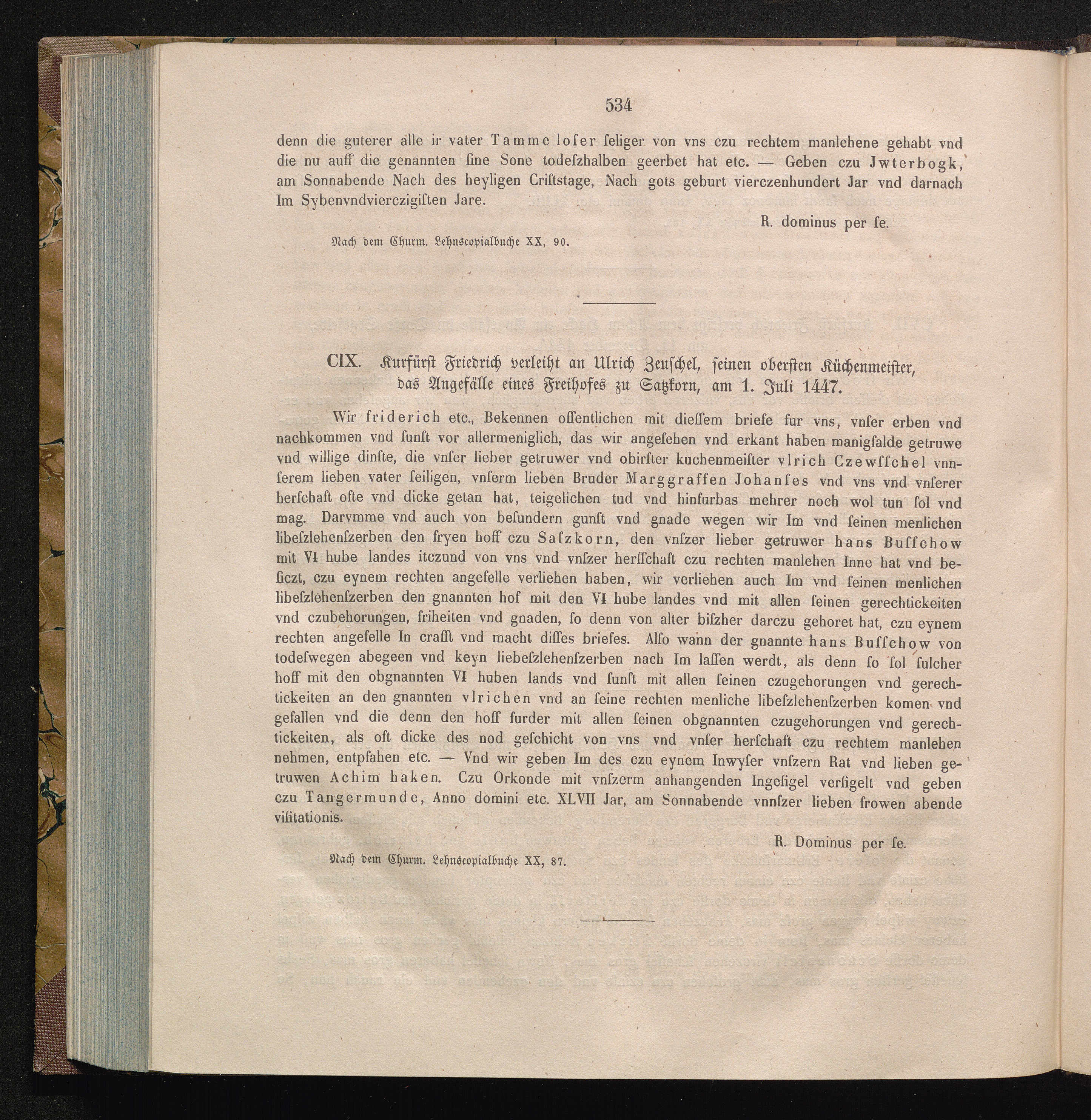 CIX. Kurfürst Friedrich verleiht an Ulrich Zeuschel, seinen obersten Küchenmeister,[...]