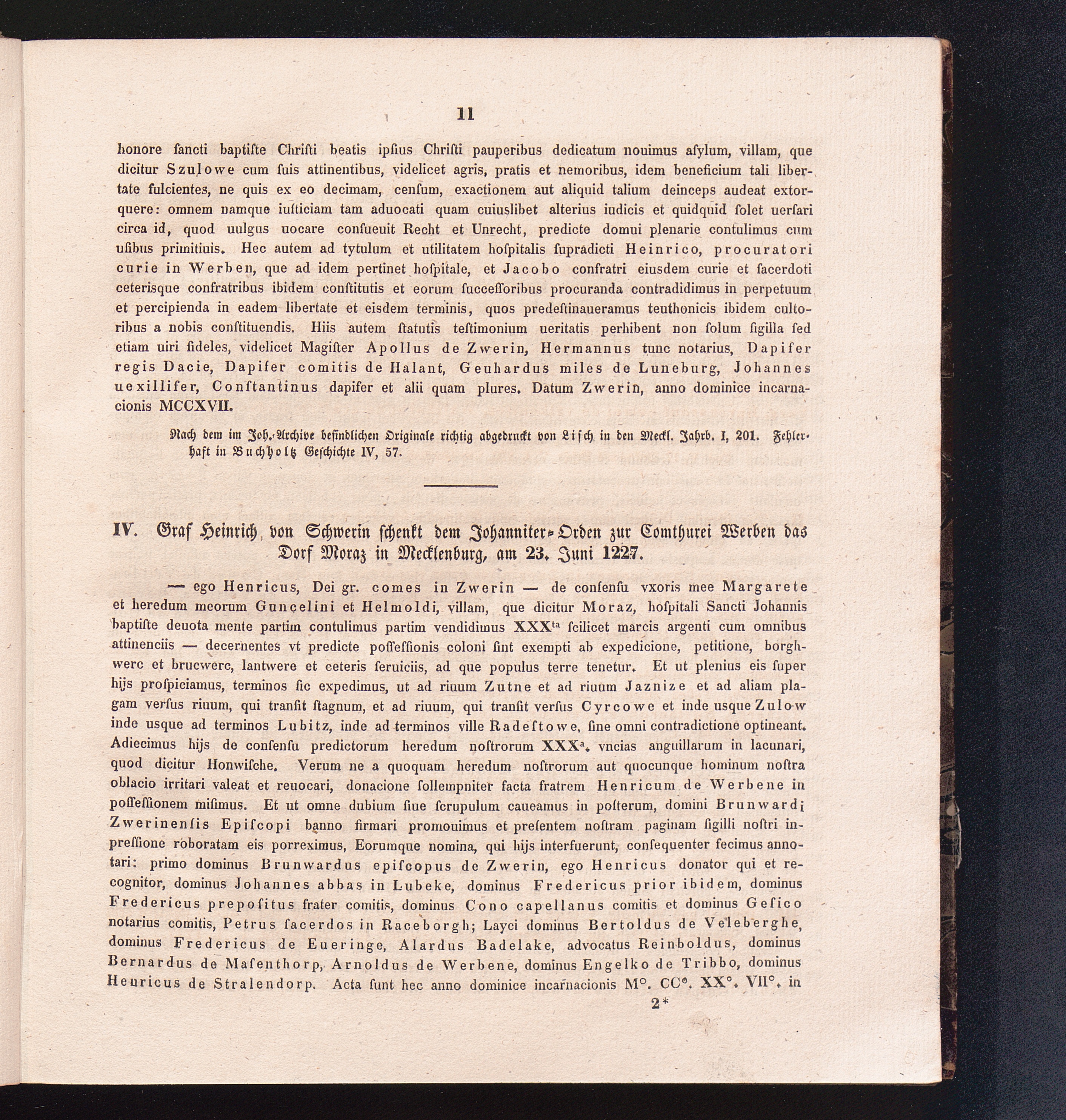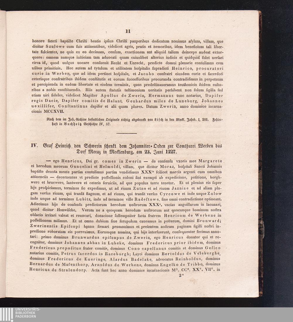 IV. Graf Heinrich von Schwerin schenkt dem Johanniter-Orden zur Comthurei Werben[...]