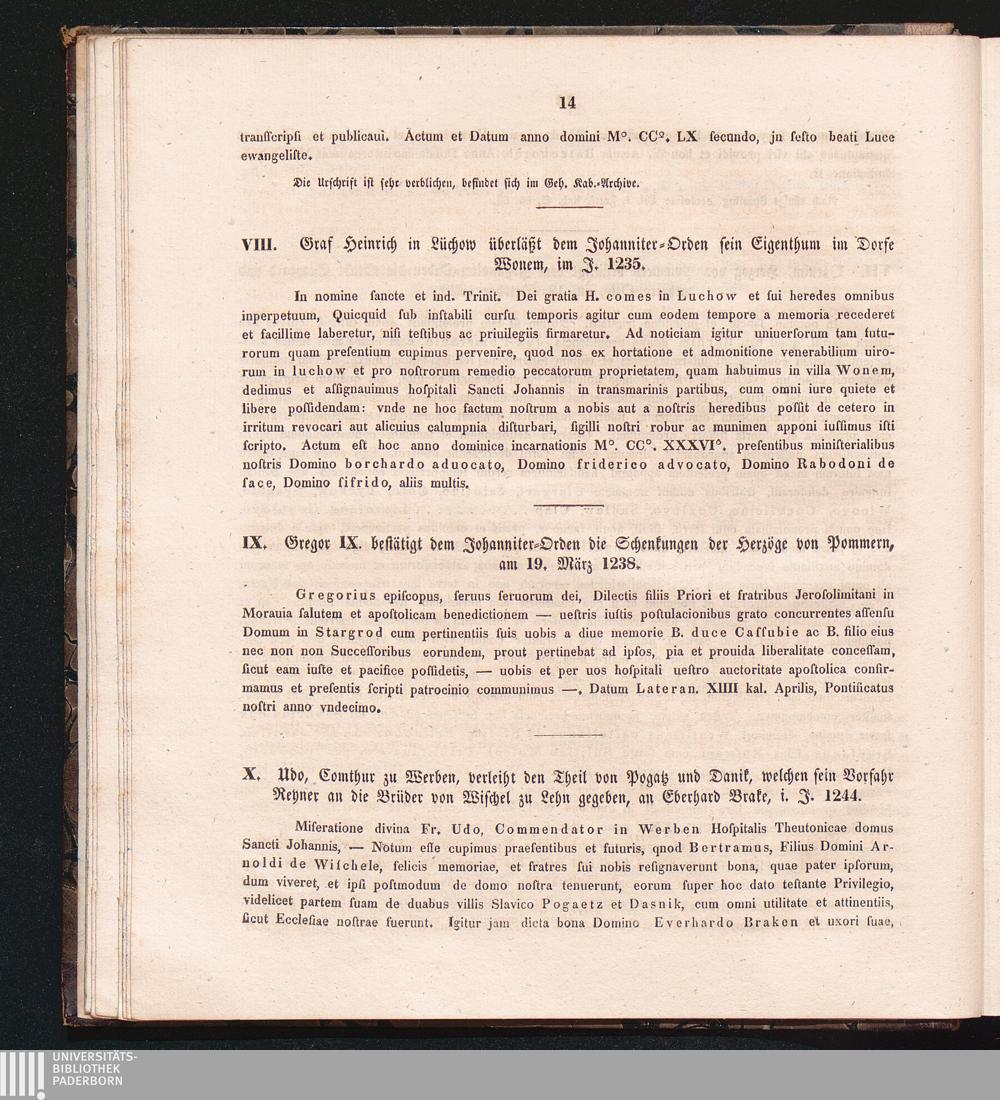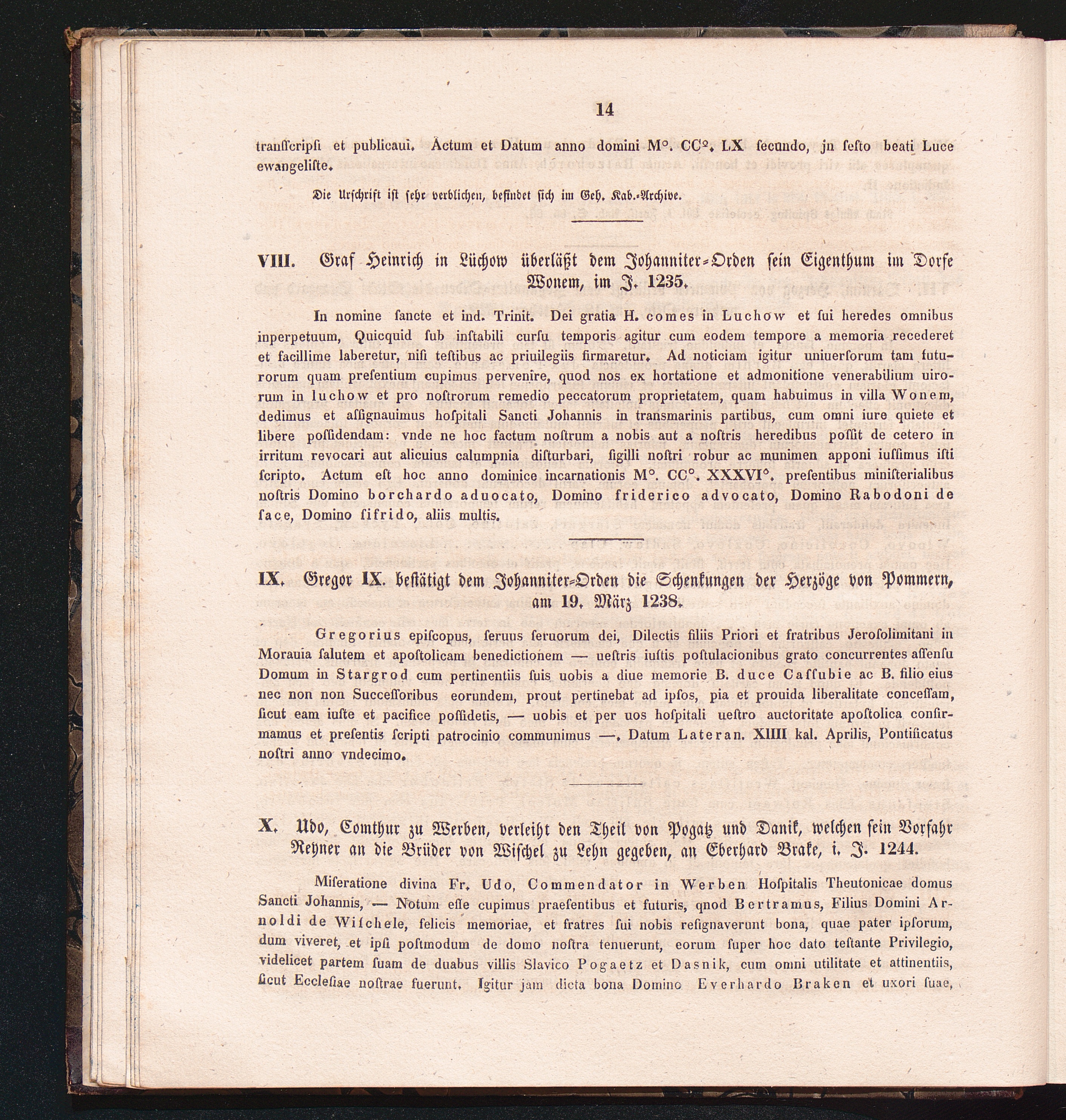 X. Udo, Comthur zu Werben, verleiht den Theil von Pogatz und Danik, welchen sein[...]