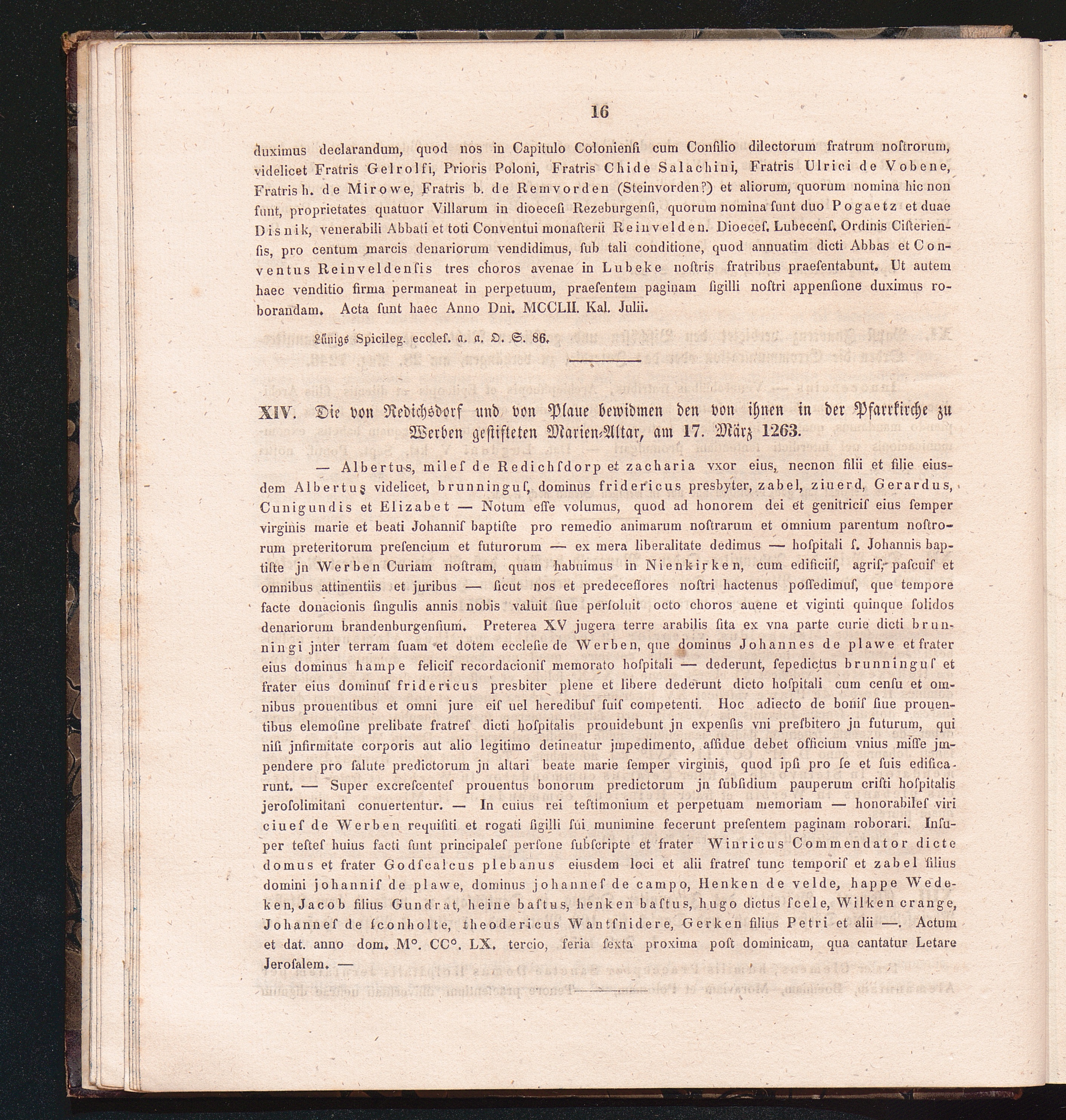XIV. Die von Redichsdorf und von Plaue bewidmen den von ihnen in der Pfarrkirche[...]