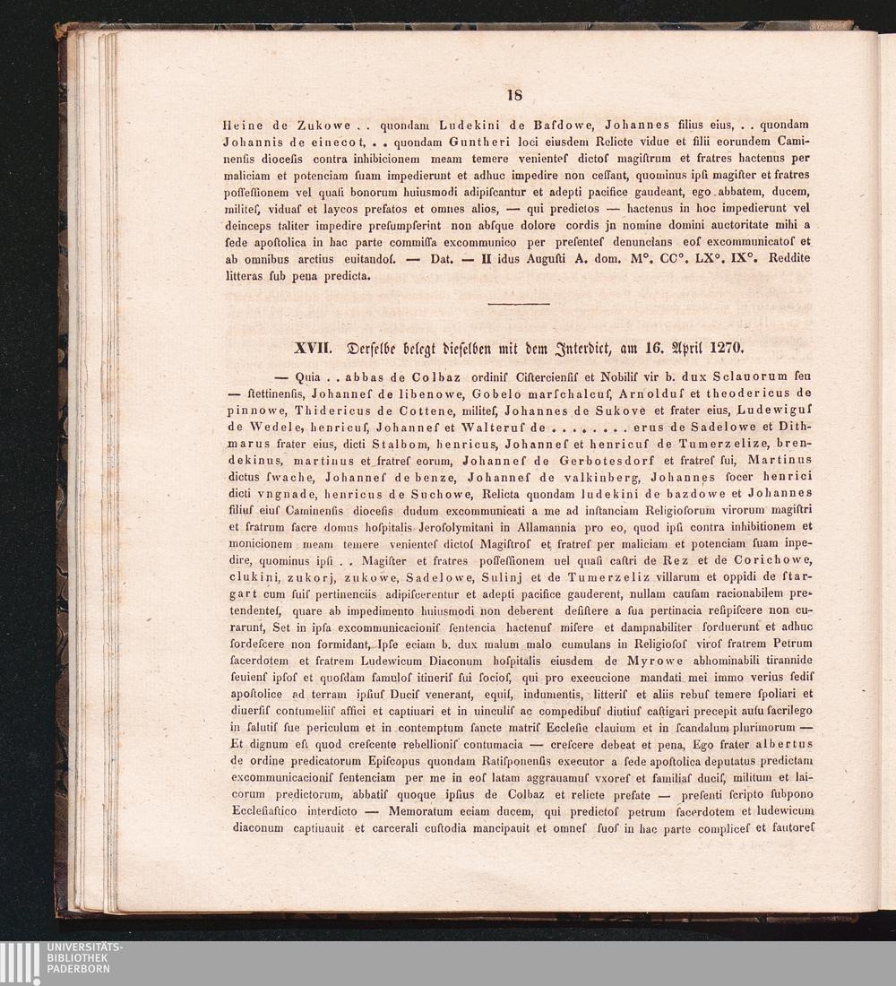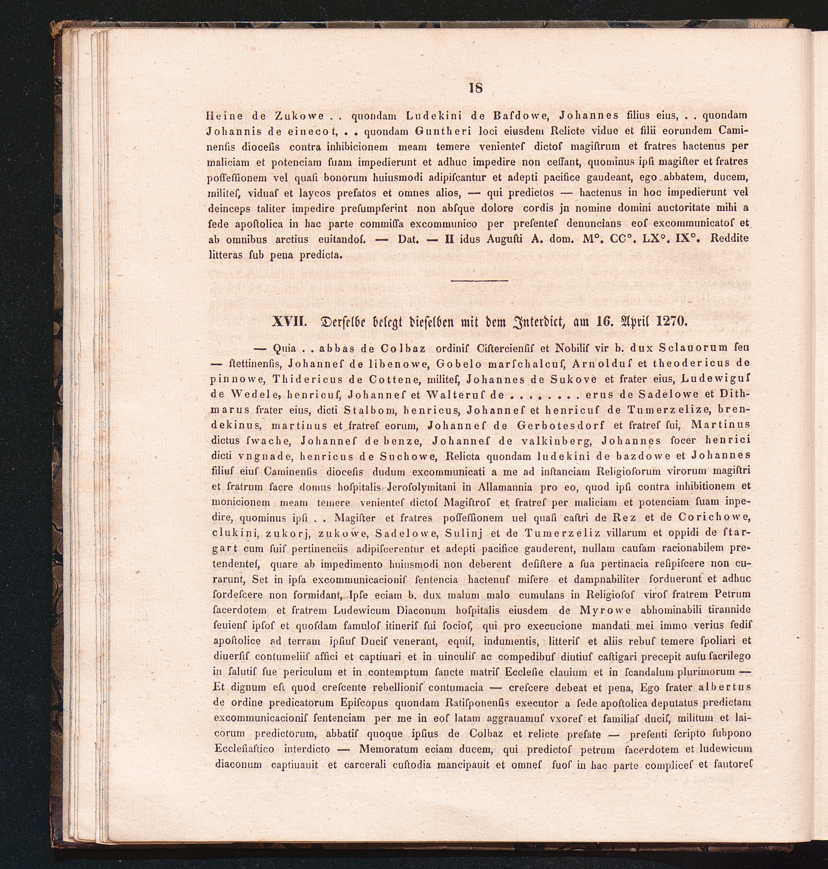 XVII. Derselbe belegt dieselben mit dem Interdict, am 16. April 1270.