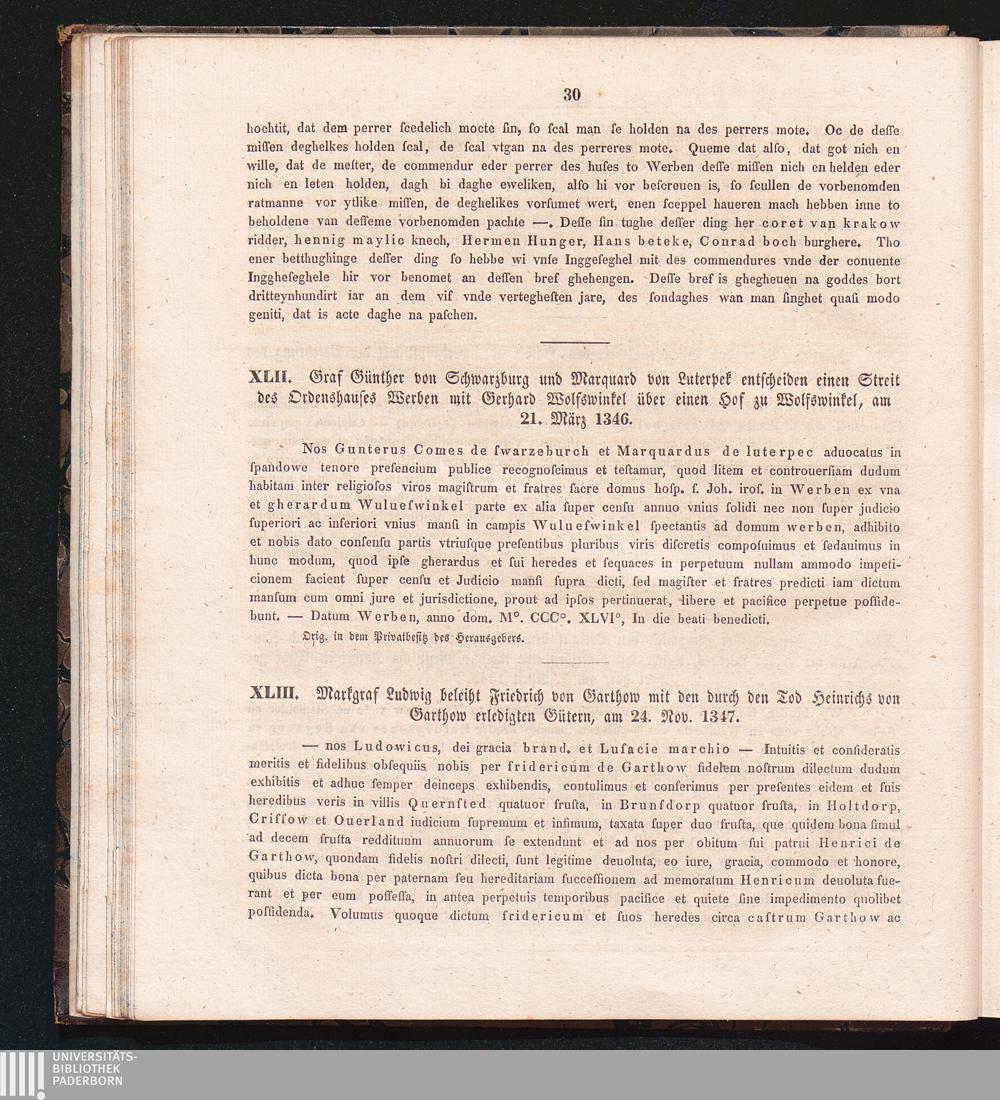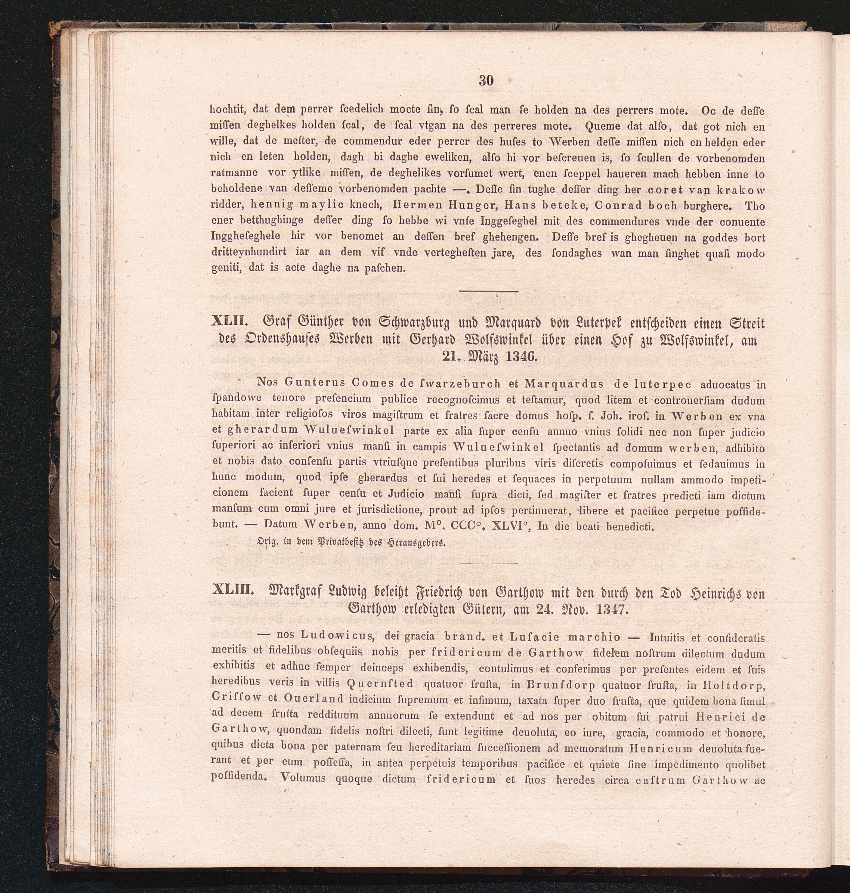 XLIII. Markgraf Ludwig beleiht Friedrich von Garthow mit den durch den Tod Heinrichs[...]