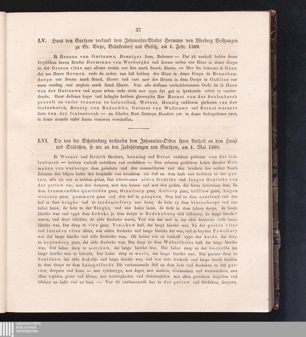 LVI. Die von der Schulenburg verkaufen dem Johanniter-Orden ihren Antheil an dem[...]