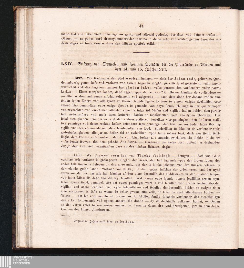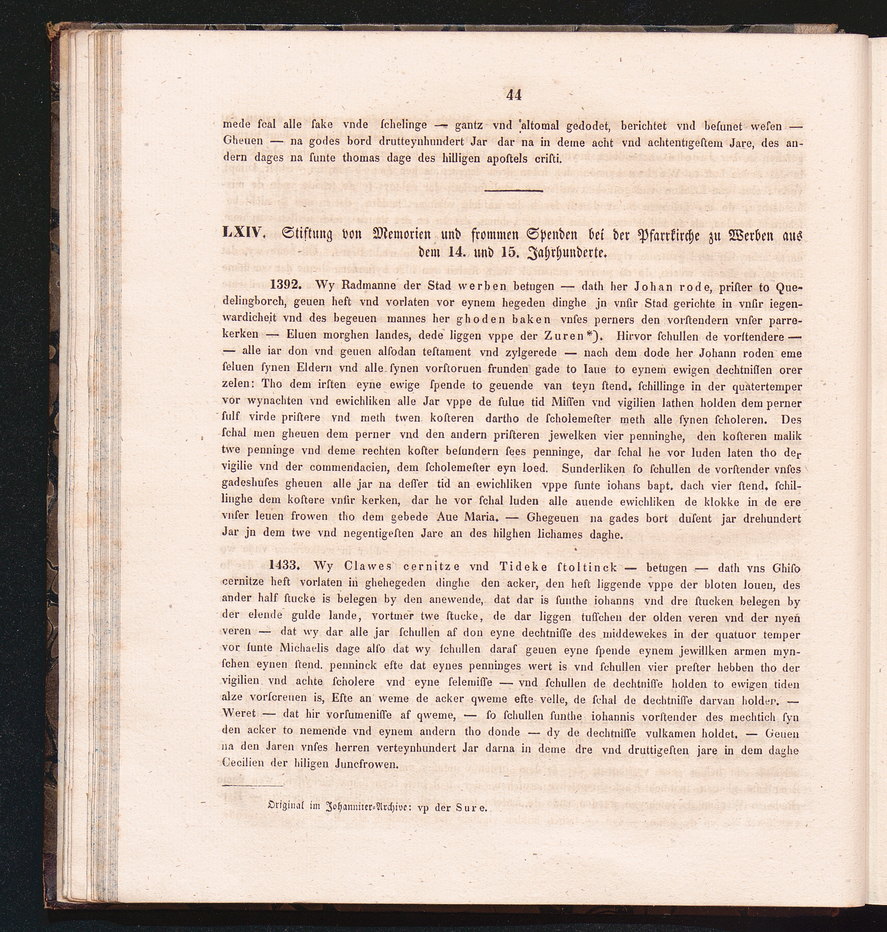 LXIV. Stiftung von Memorien und frommen Spenden bei der Pfarrkirche zu Werben aus[...]