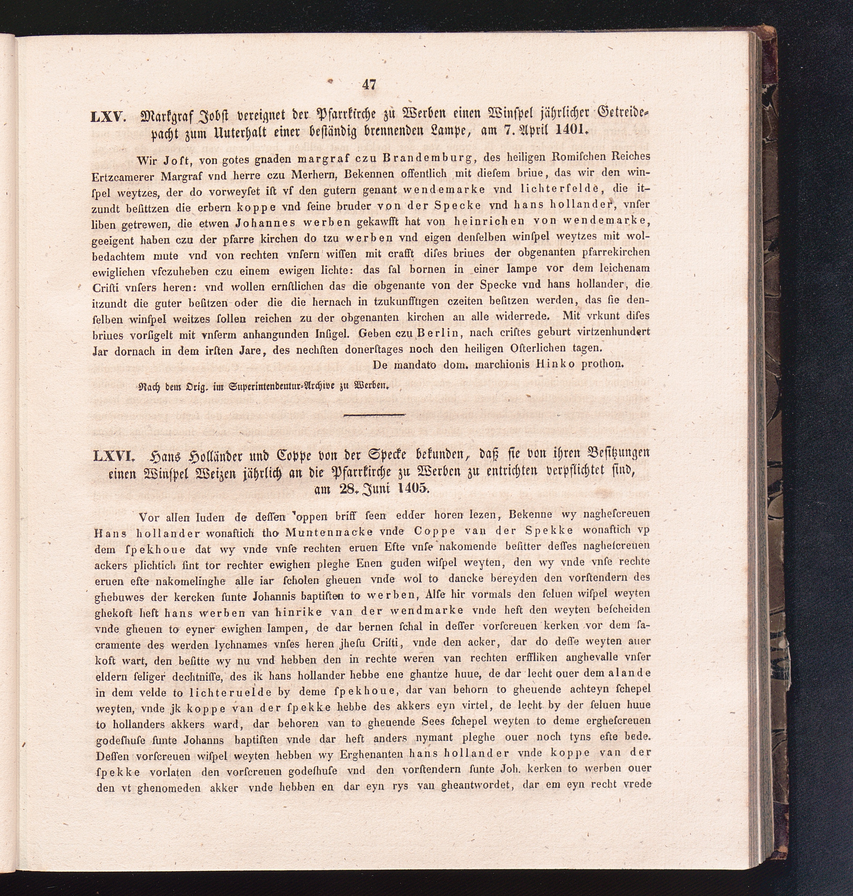 LXVI. Hans Hollander und Coppe von der Specke bekunden, daß sie von ihren Besitzungen[...]