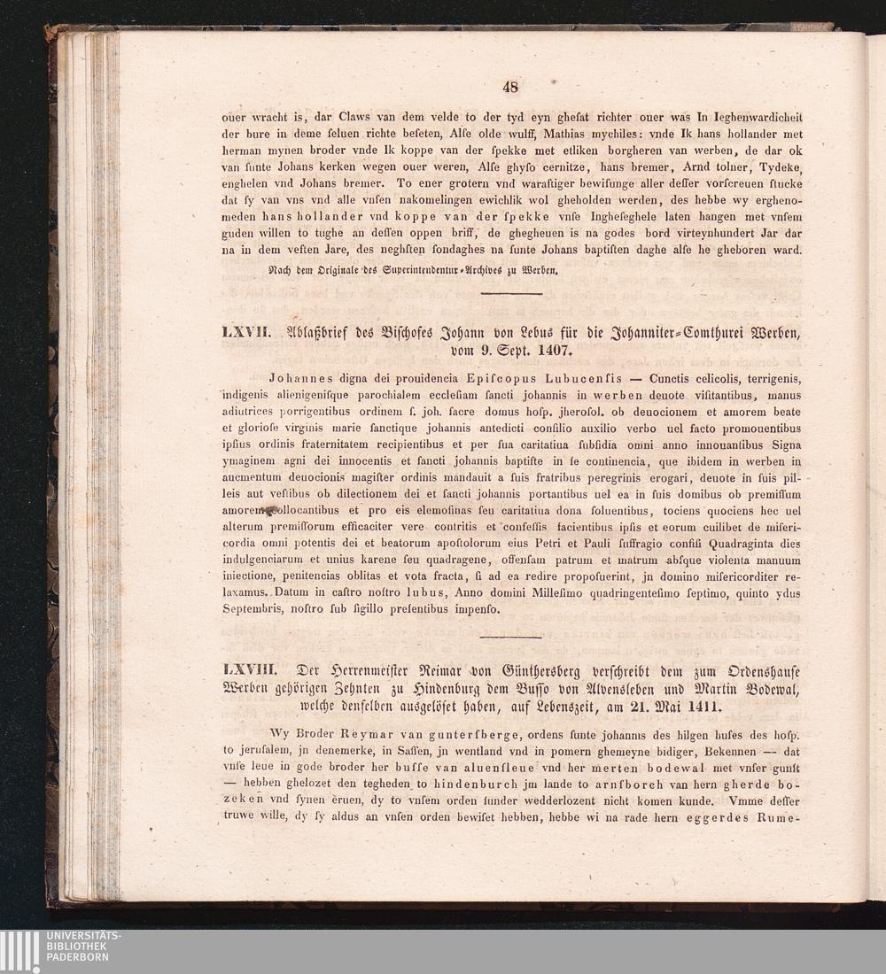 LXVIII. Der Herrenmeister Reimar von Günthersberg verschreibt dem zum Ordenshause[...]