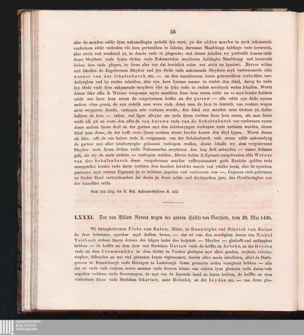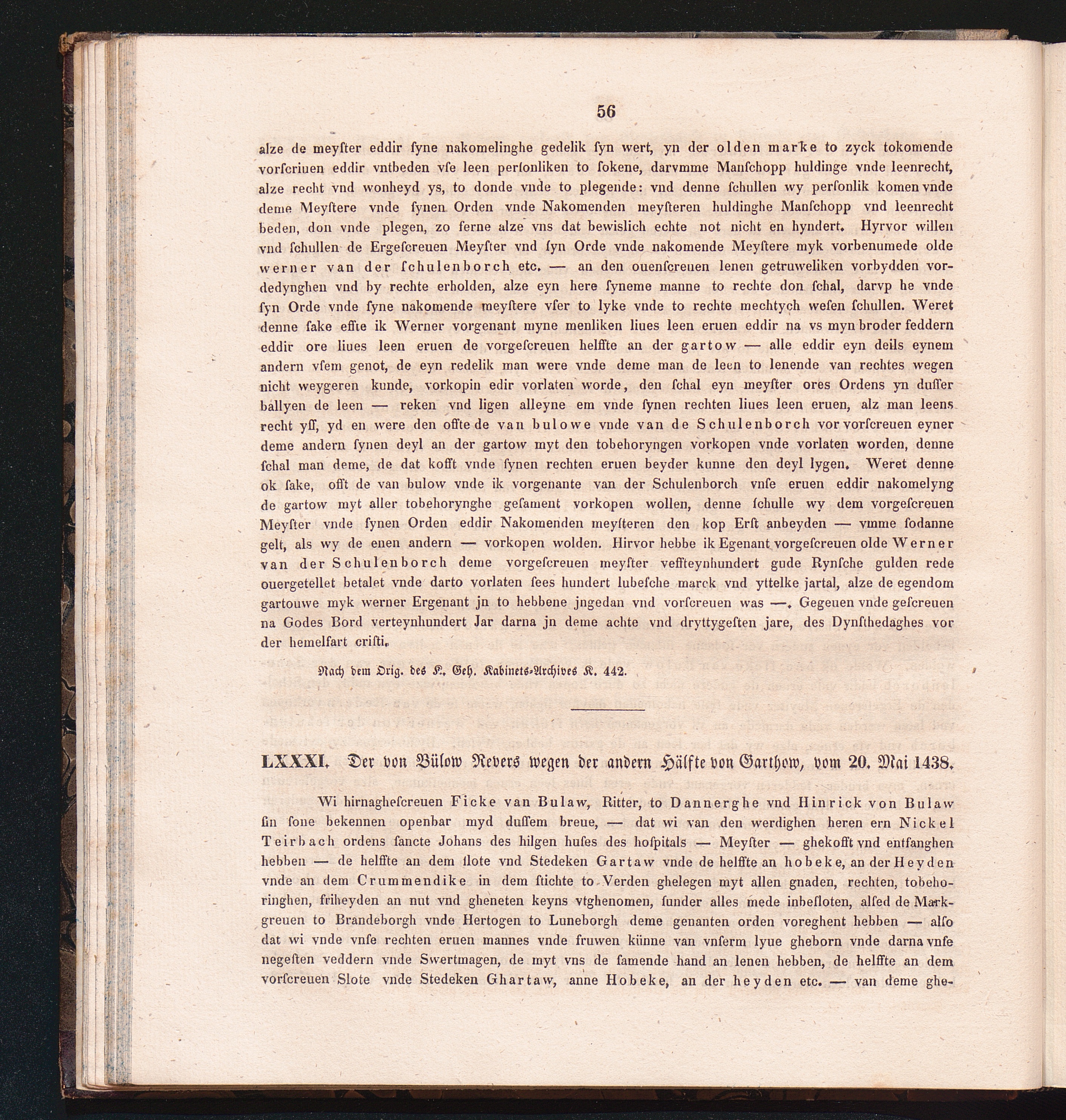 LXXXI. Der von Bülow Revers wegen der andern Hälfte von Garthow, vom 20. Mai 143[...]