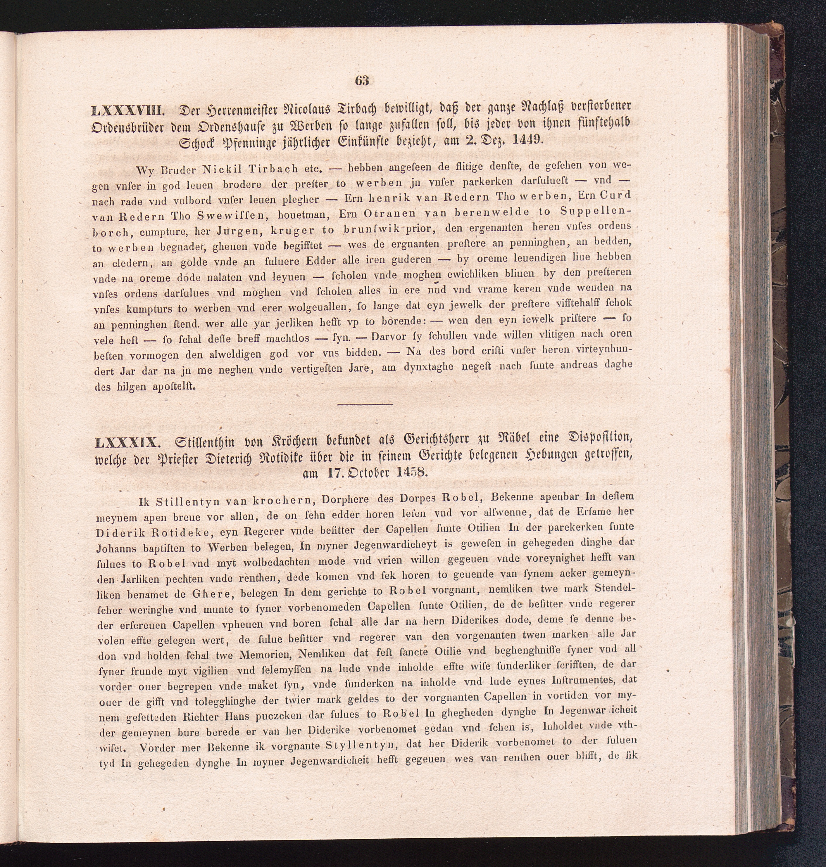 LXXXIX. Stillenthin von Kröchern bekundet als Gerichtsherr zu Räbel eine Disposition,[...]