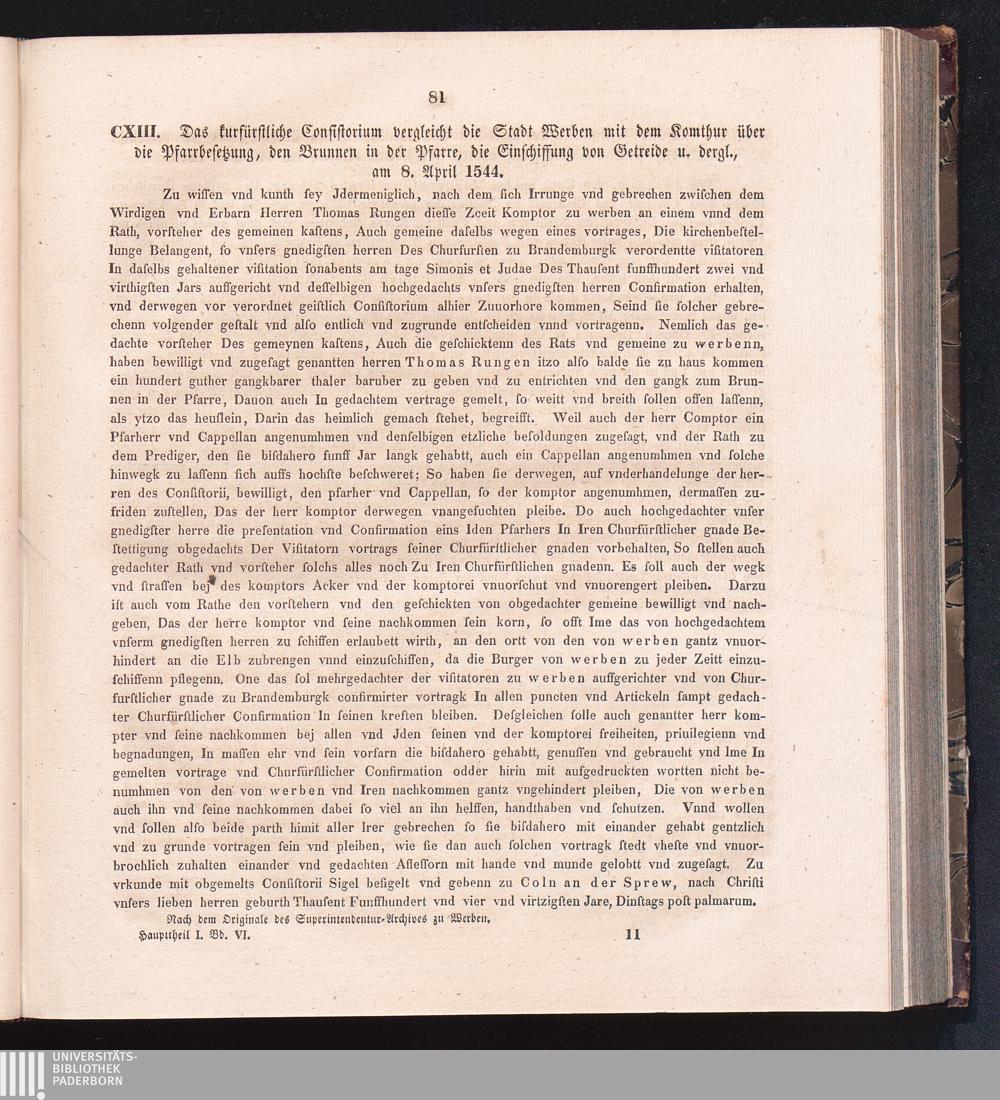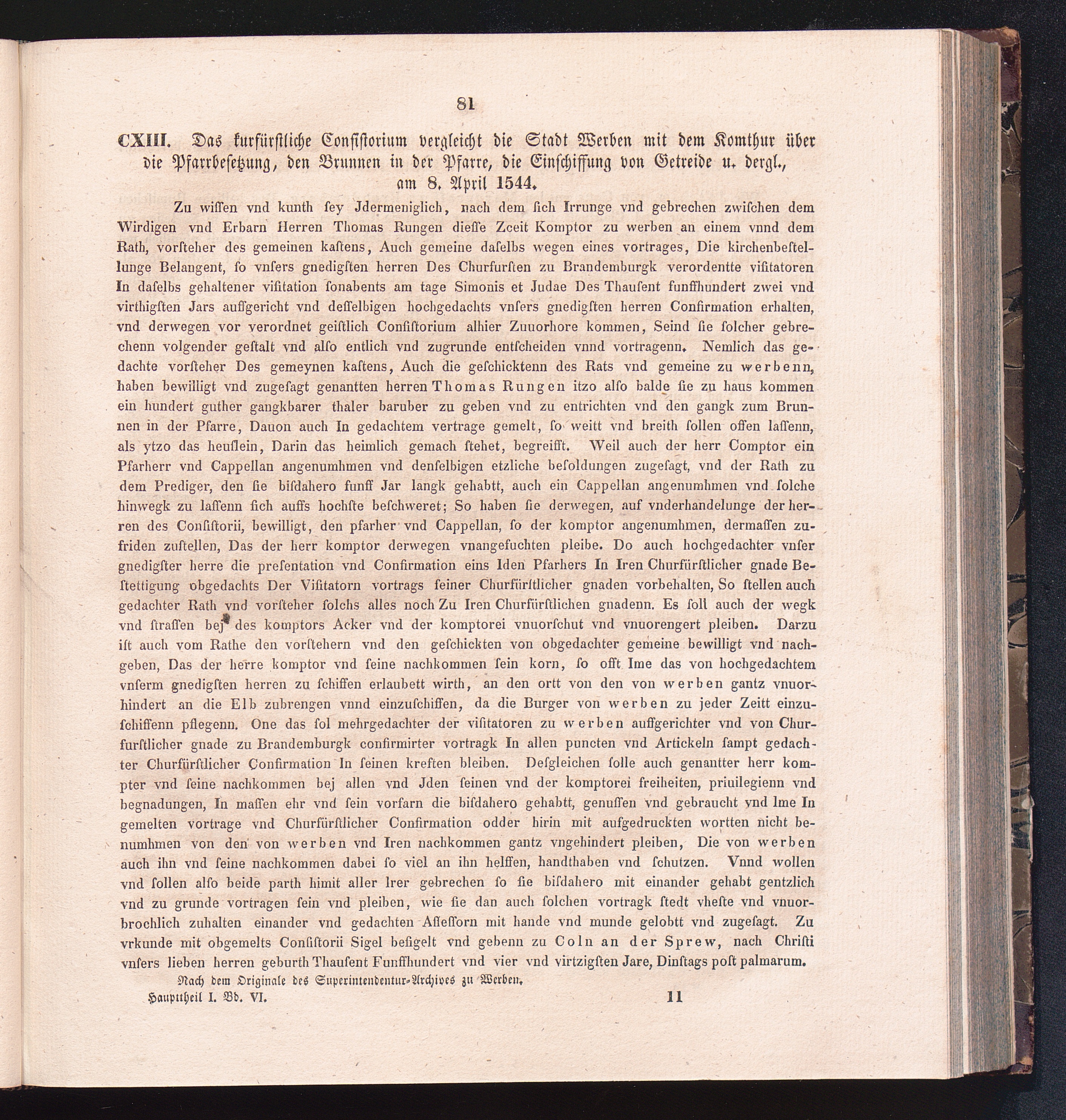 CXIII. Das kurfürstliche Consistorium vergleicht die Stadt Werben mit dem Komthur[...]