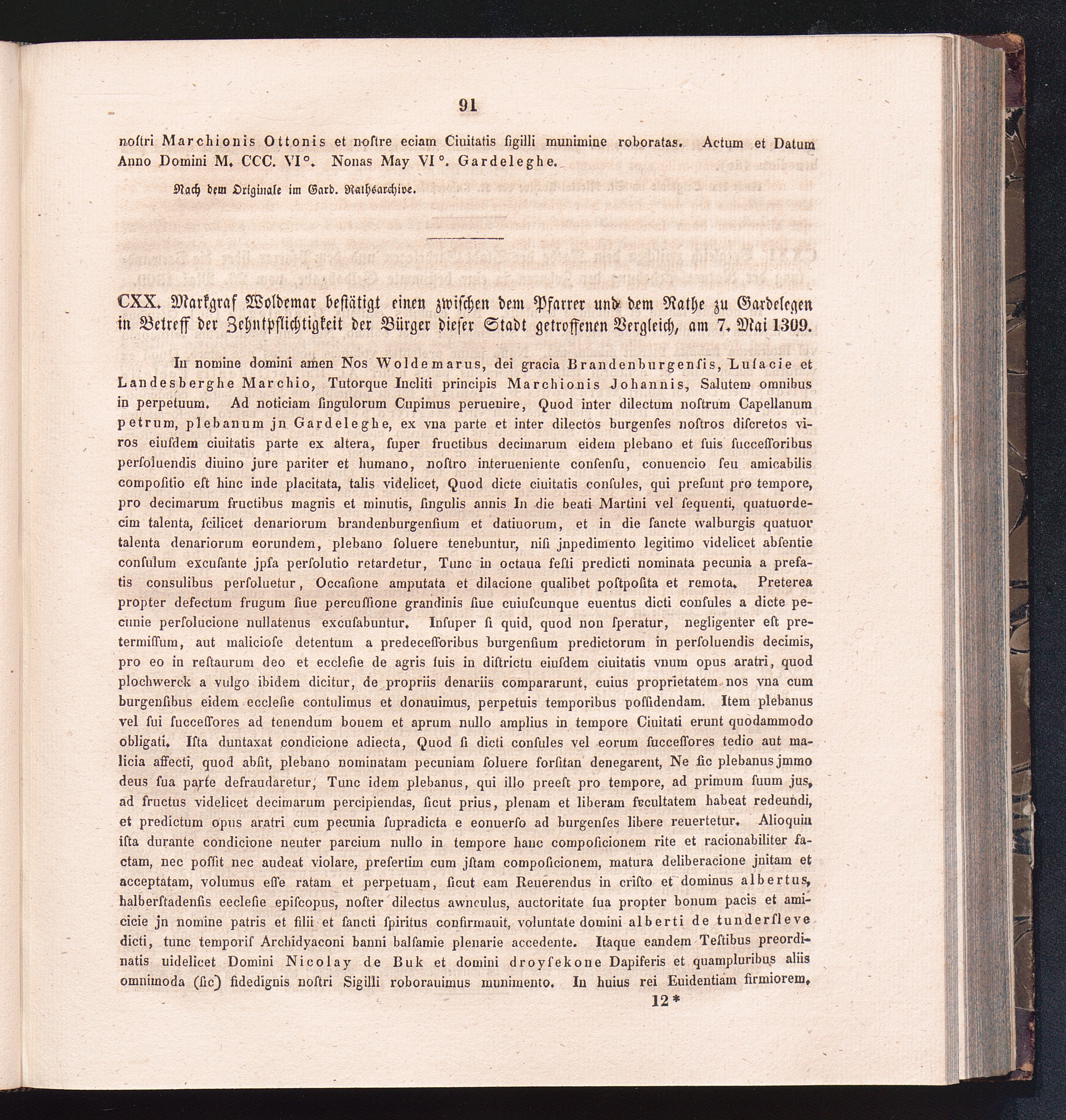 CXX. Markgraf Woldemar bestätigt, einen zwischen dem Pfarrer und dem Rathe zu Gardelegen[...]
