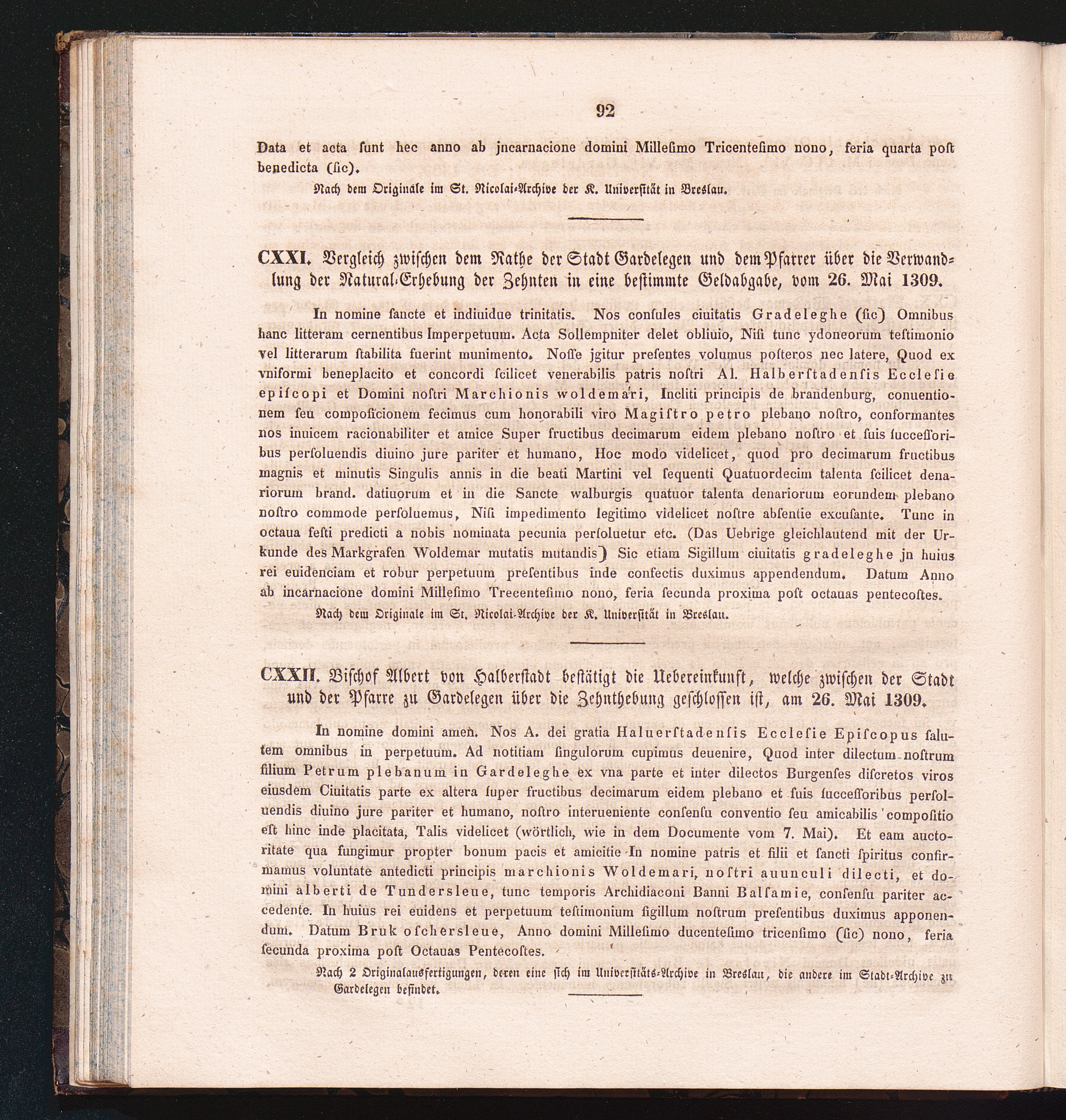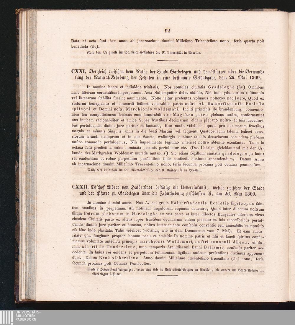 CXXII. Bischof Albert von Halberstadt bestätigt die Uebereinkunft, welche zwischen[...]