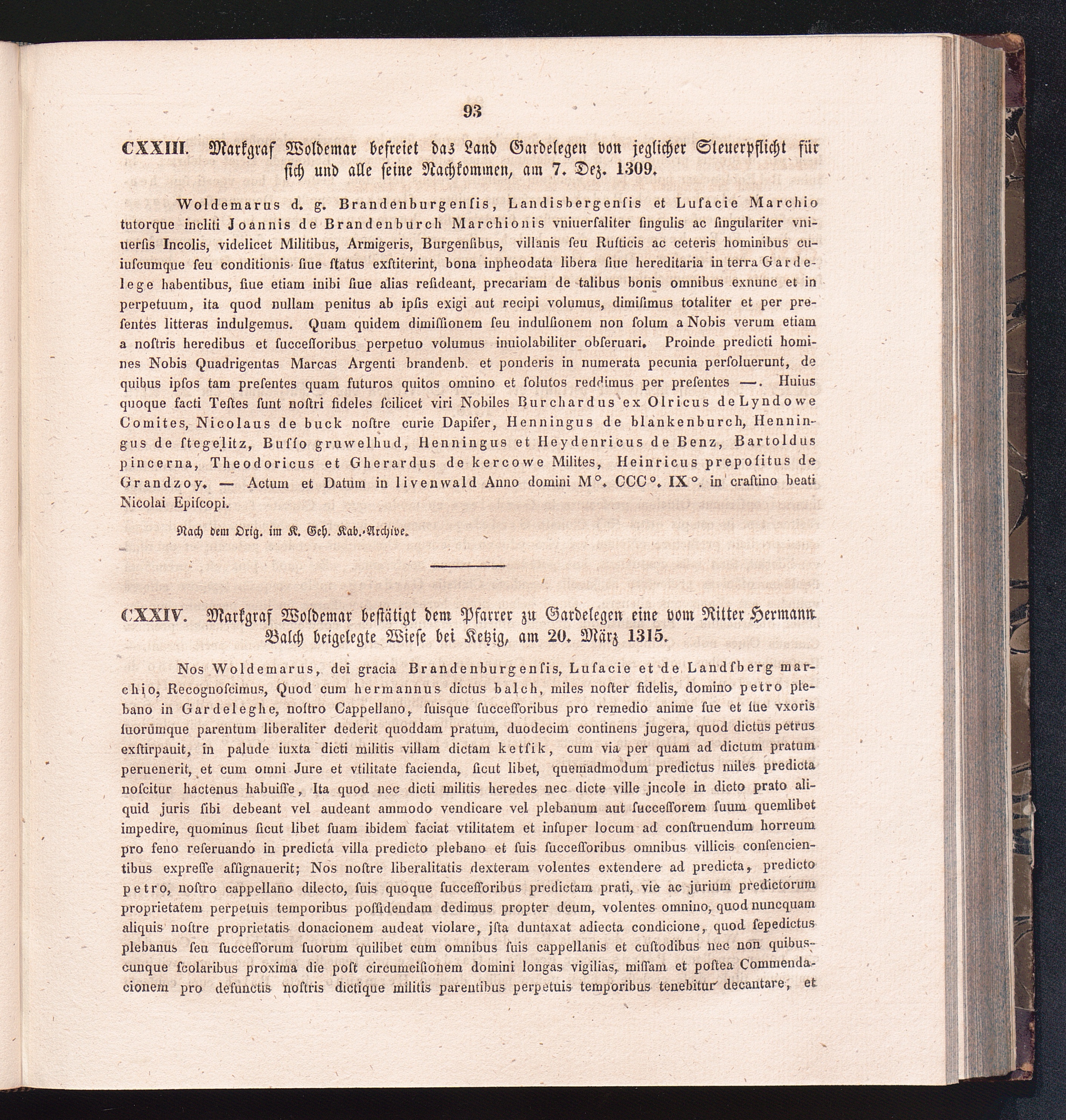 CXXIV. Markgraf Woldemar bestätigt dem Pfarrer zu Gardelegen eine von Ritter Hermann[...]