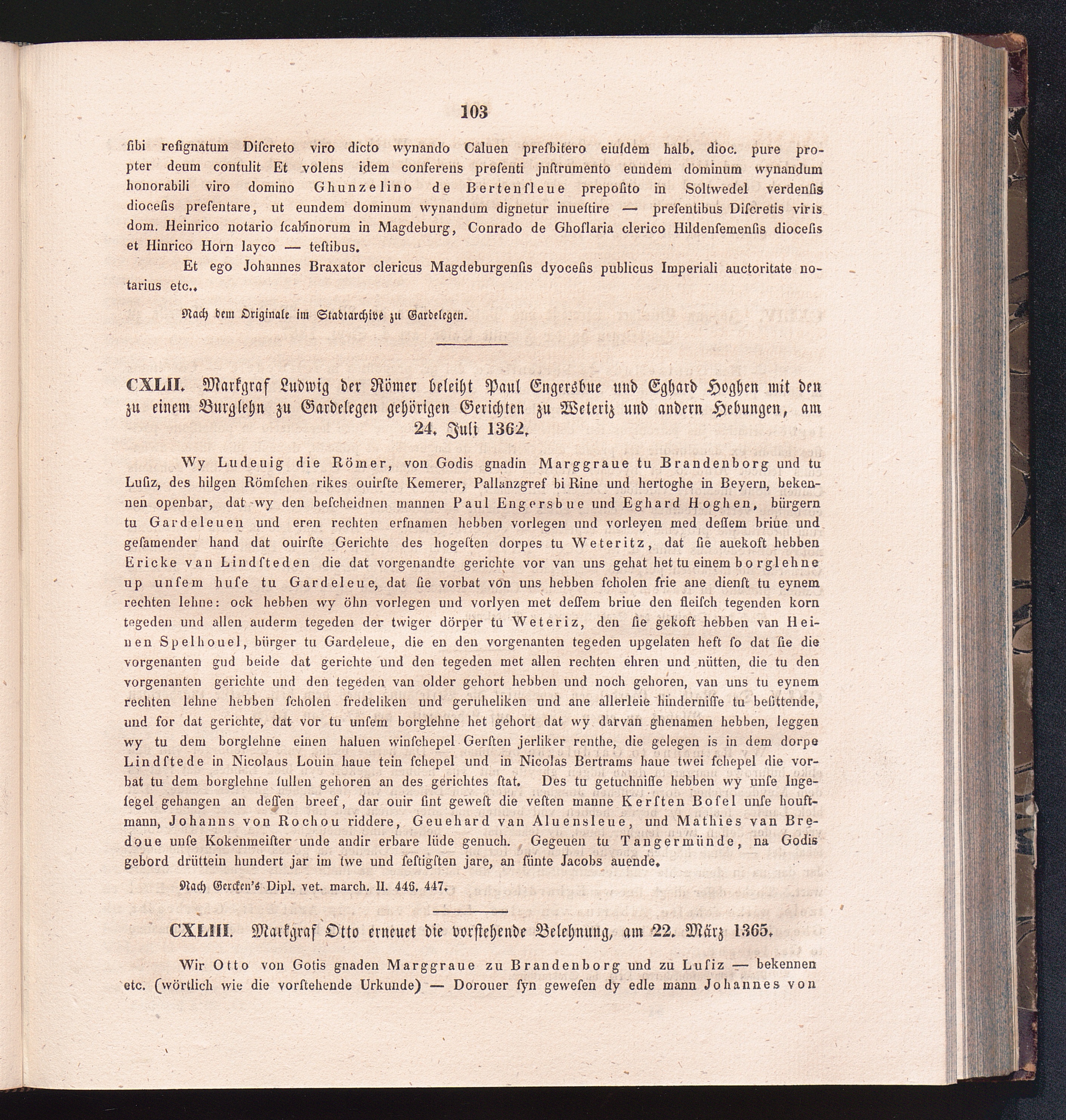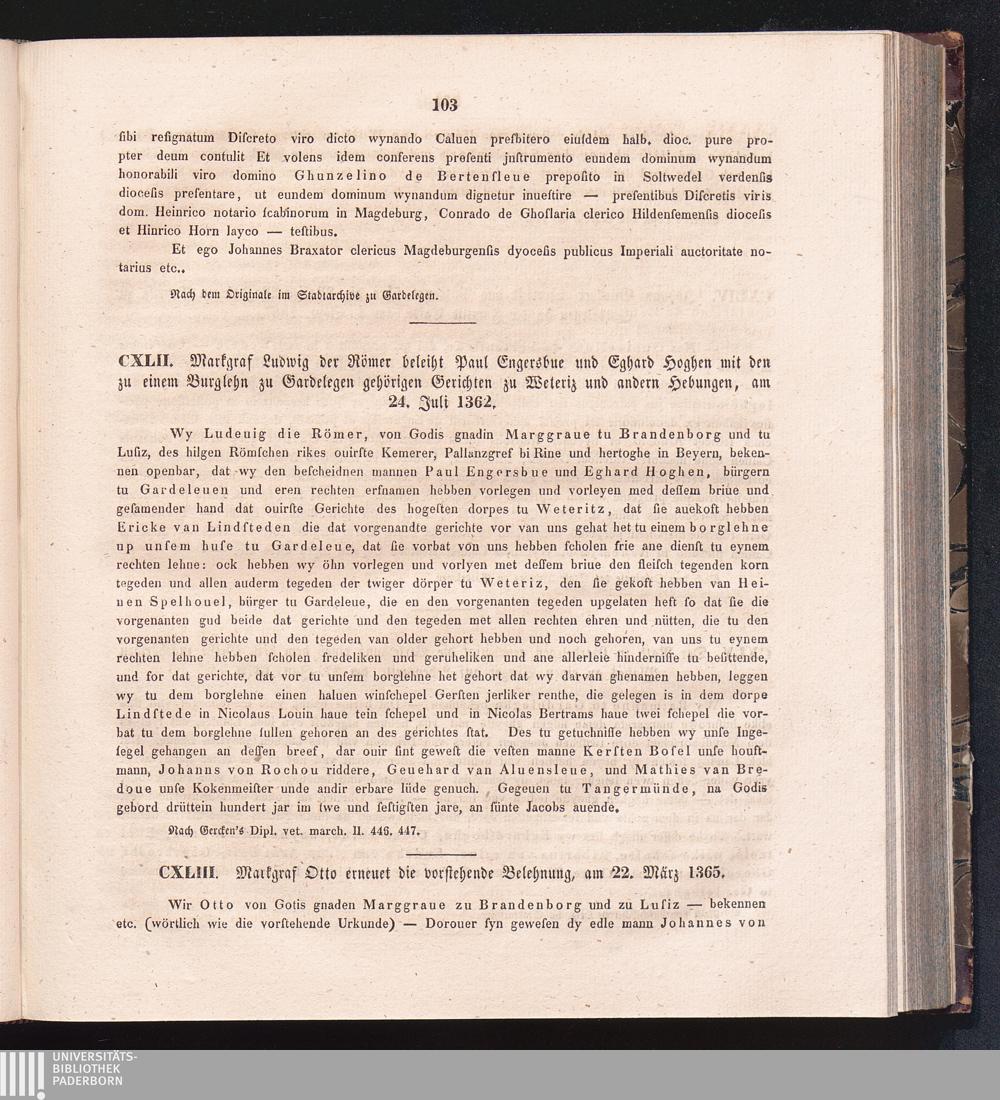 CXLIII. Markgraf Otto erneuet die vorstehende Belehnung, am 22. März 1365.