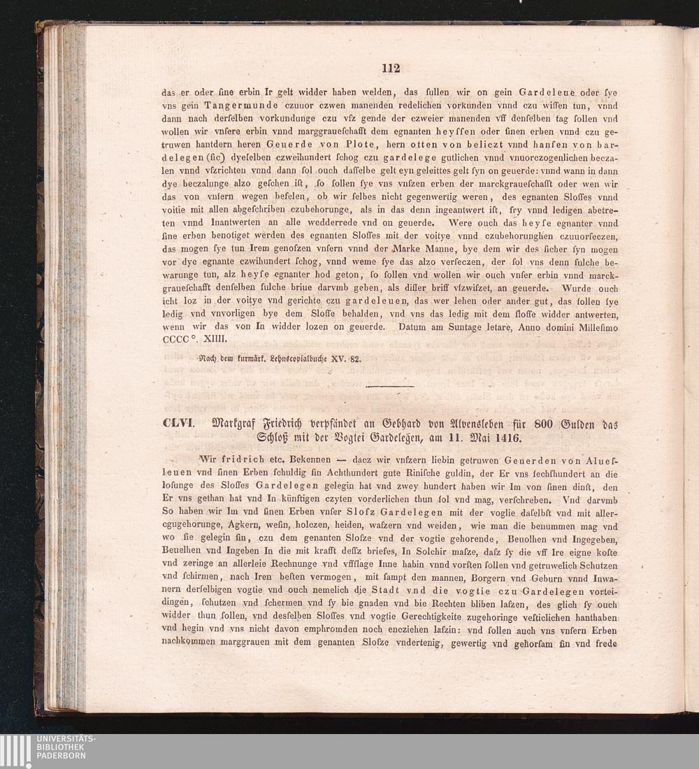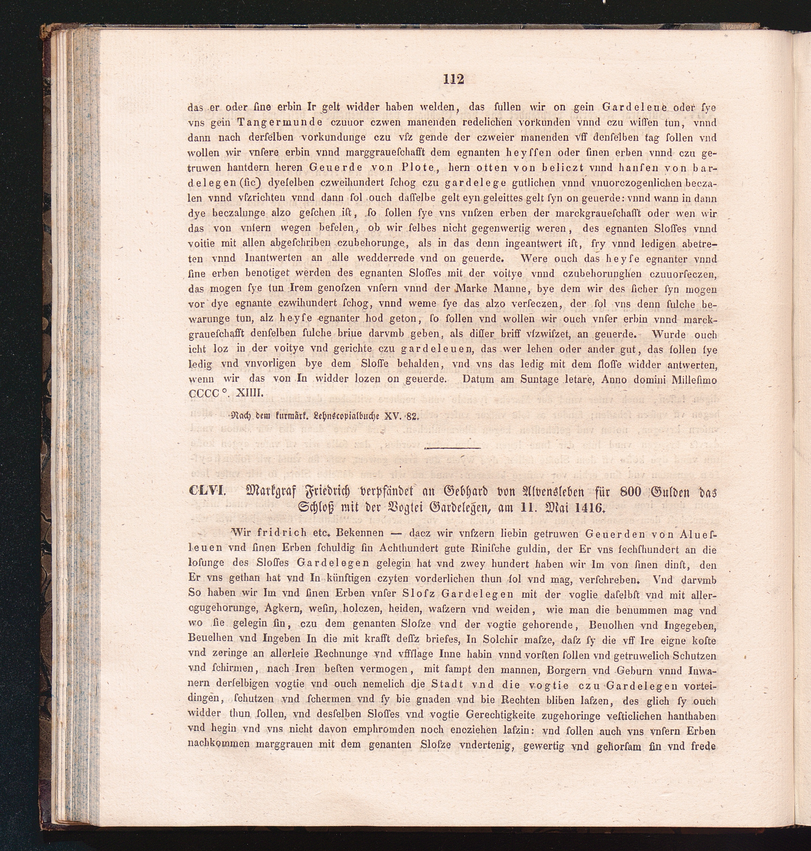 CLVI. Markgraf Friedrich verpfändet an Gebhard von Alvensleben für 800 Gulden das[...]