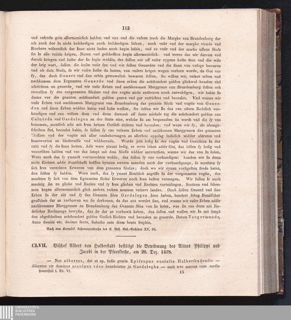 CLVII. Bischof Albert von Halberstadt bestätigt die Bewidmung des Altars Philippi[...]