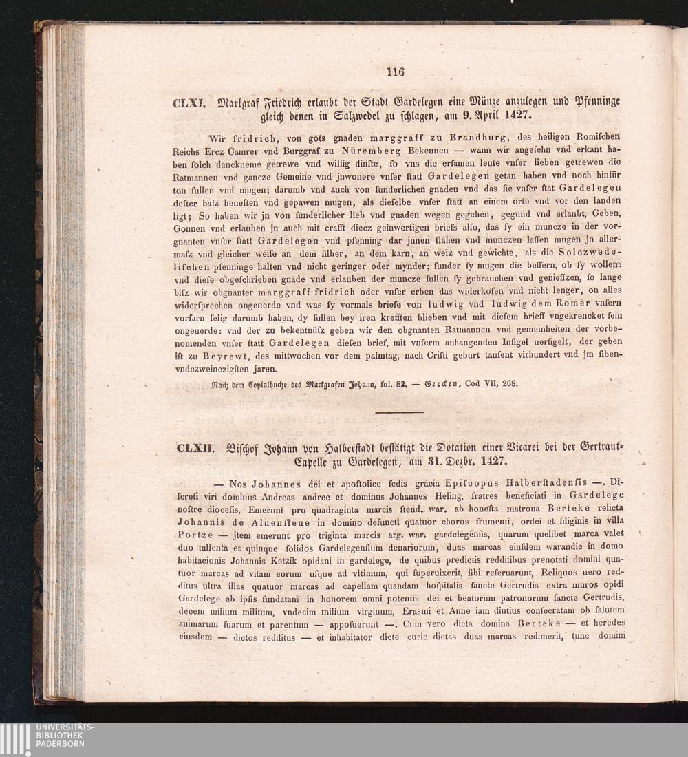 CLXII. Bischof Johann von Halberstadt bestätigt die Dotation einer Vicarei bei der[...]