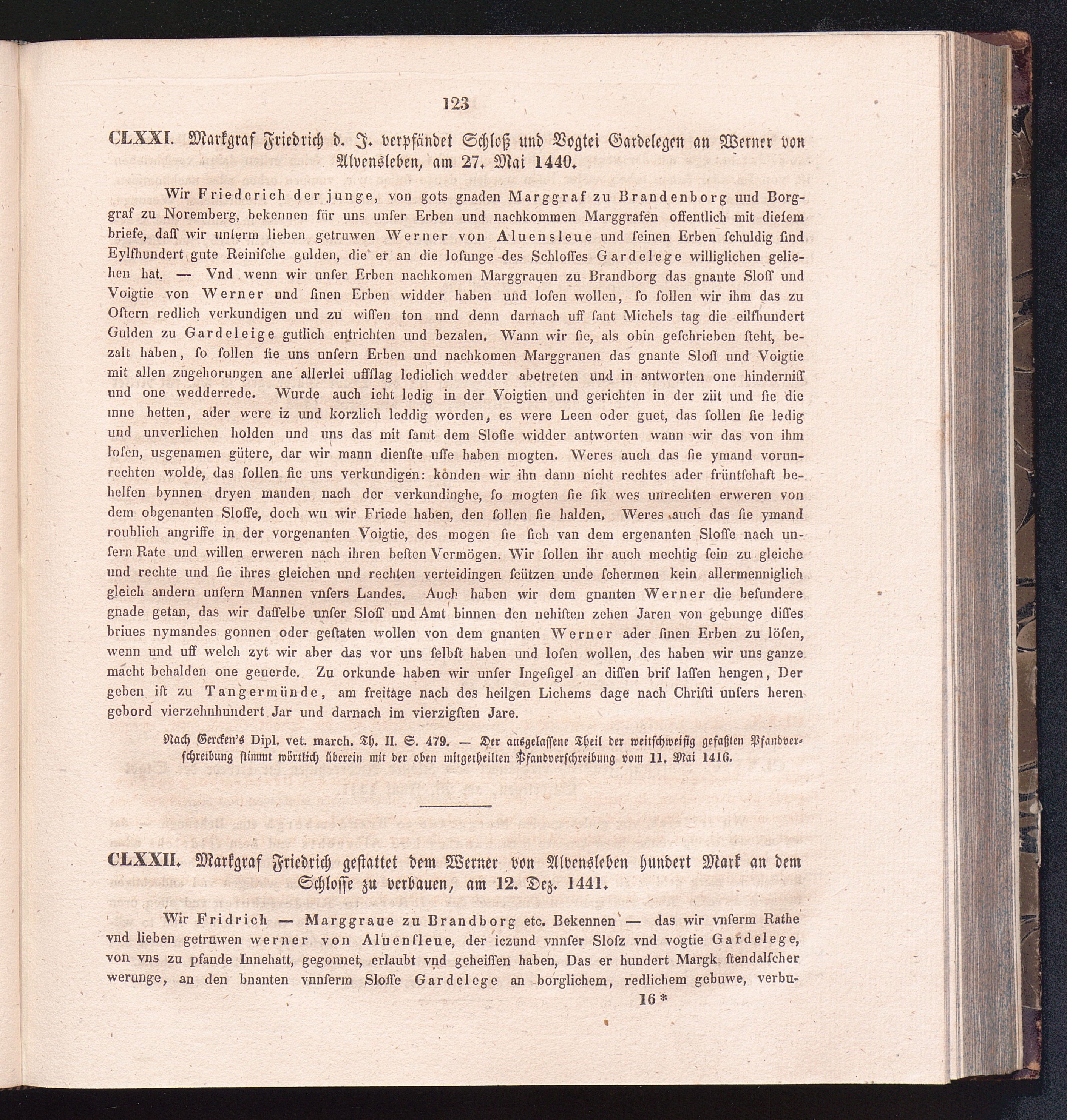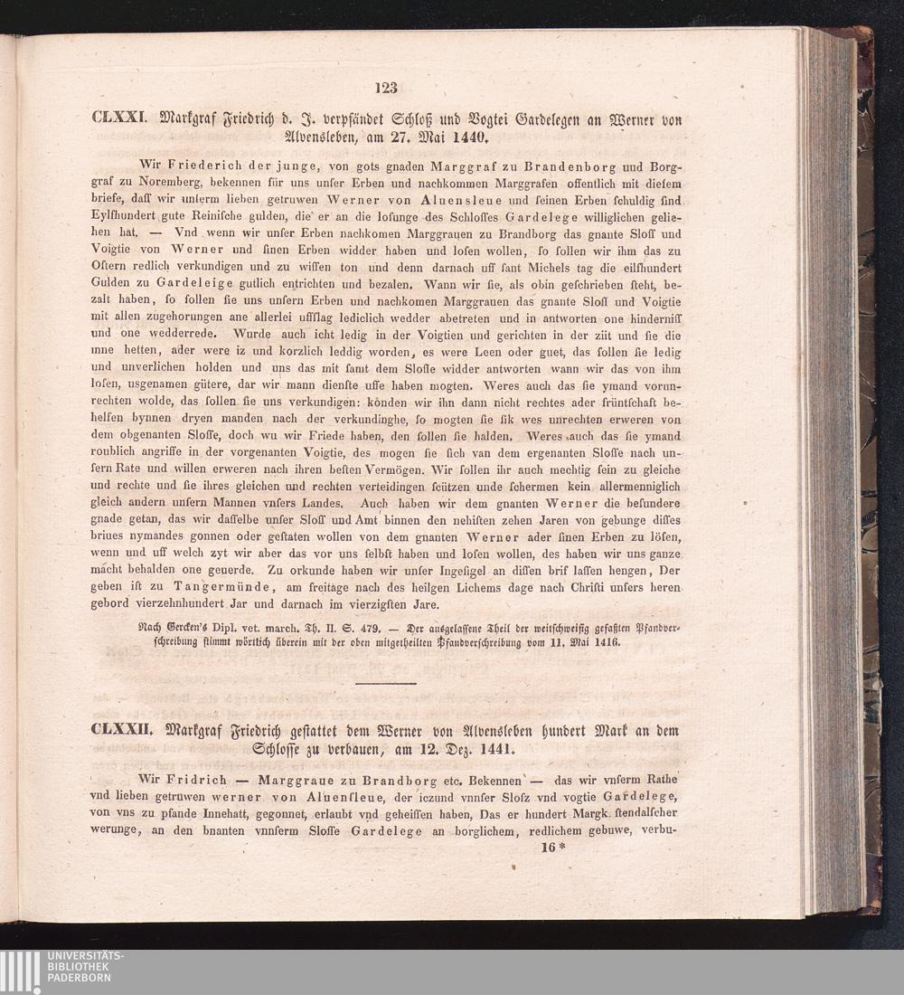 CLXXII. Markgraf Friedrich gestattet dem Werner von Alvensleben hundert Mark an dem[...]