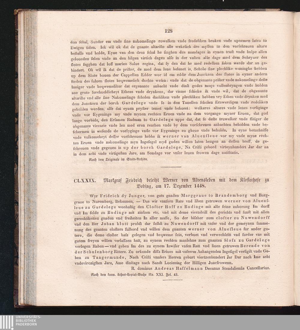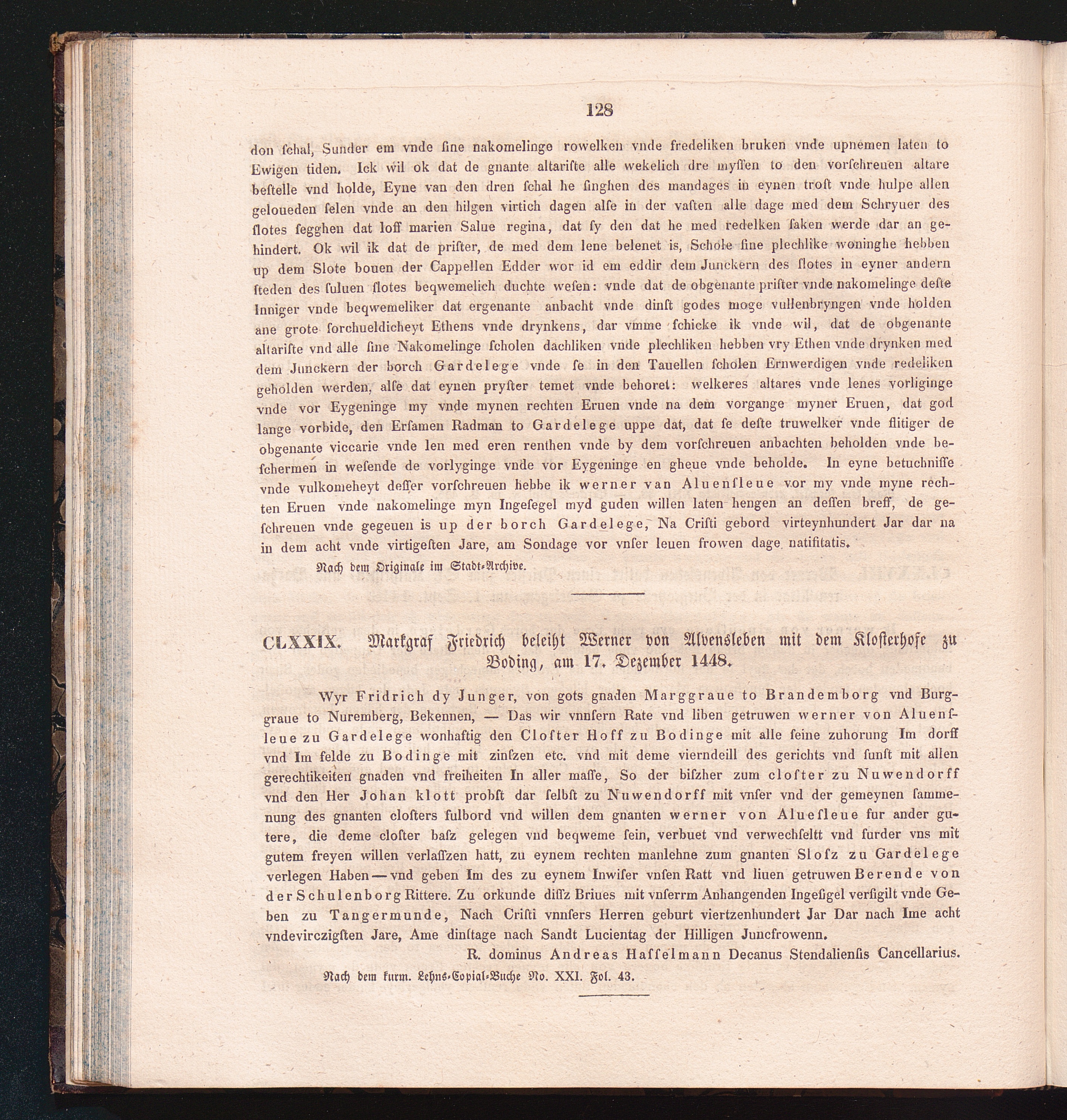 CLXXIX. Markgraf Friedrich beleiht Werner von Alvensleben mit dem Klosterhofe zu[...]