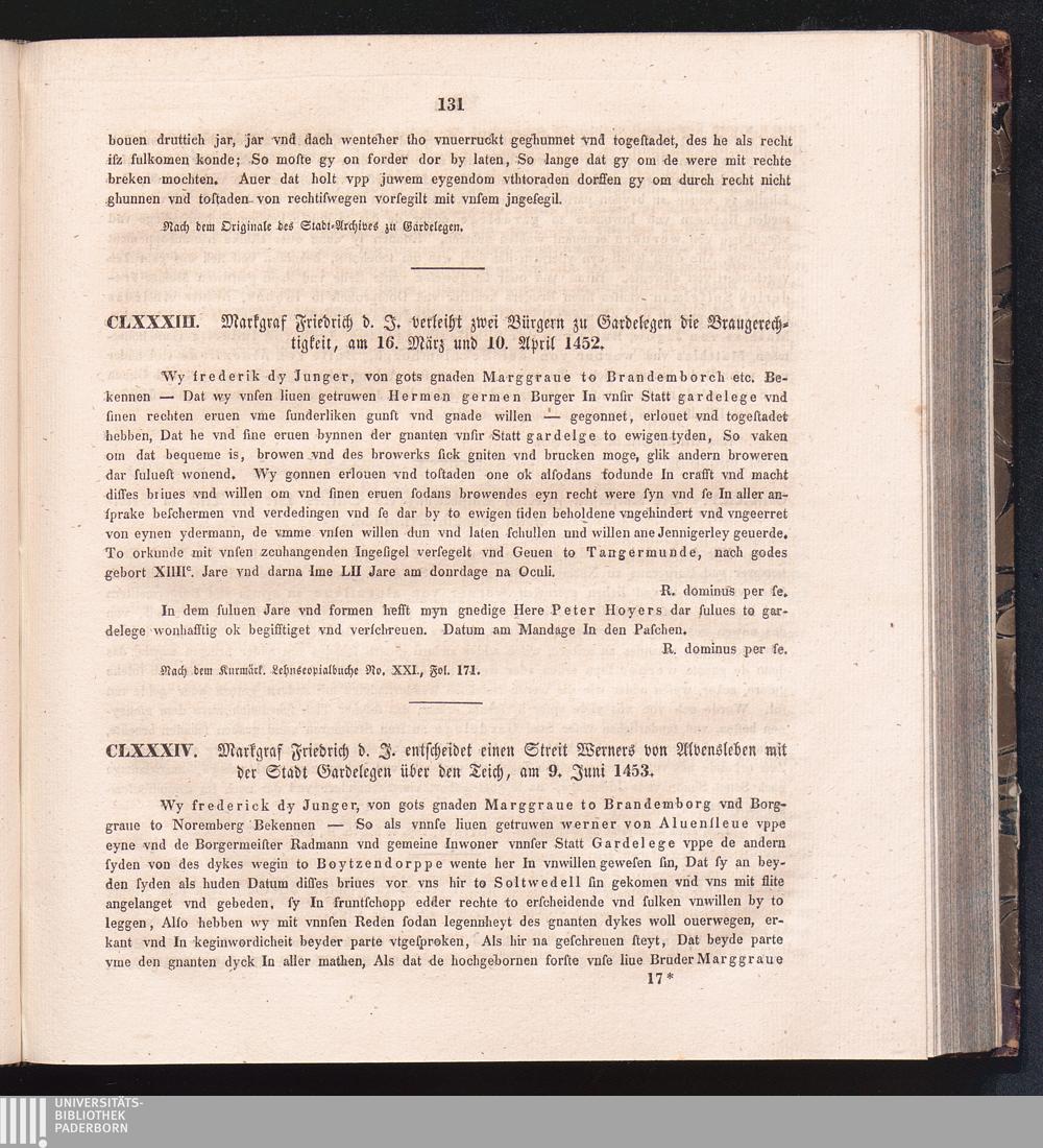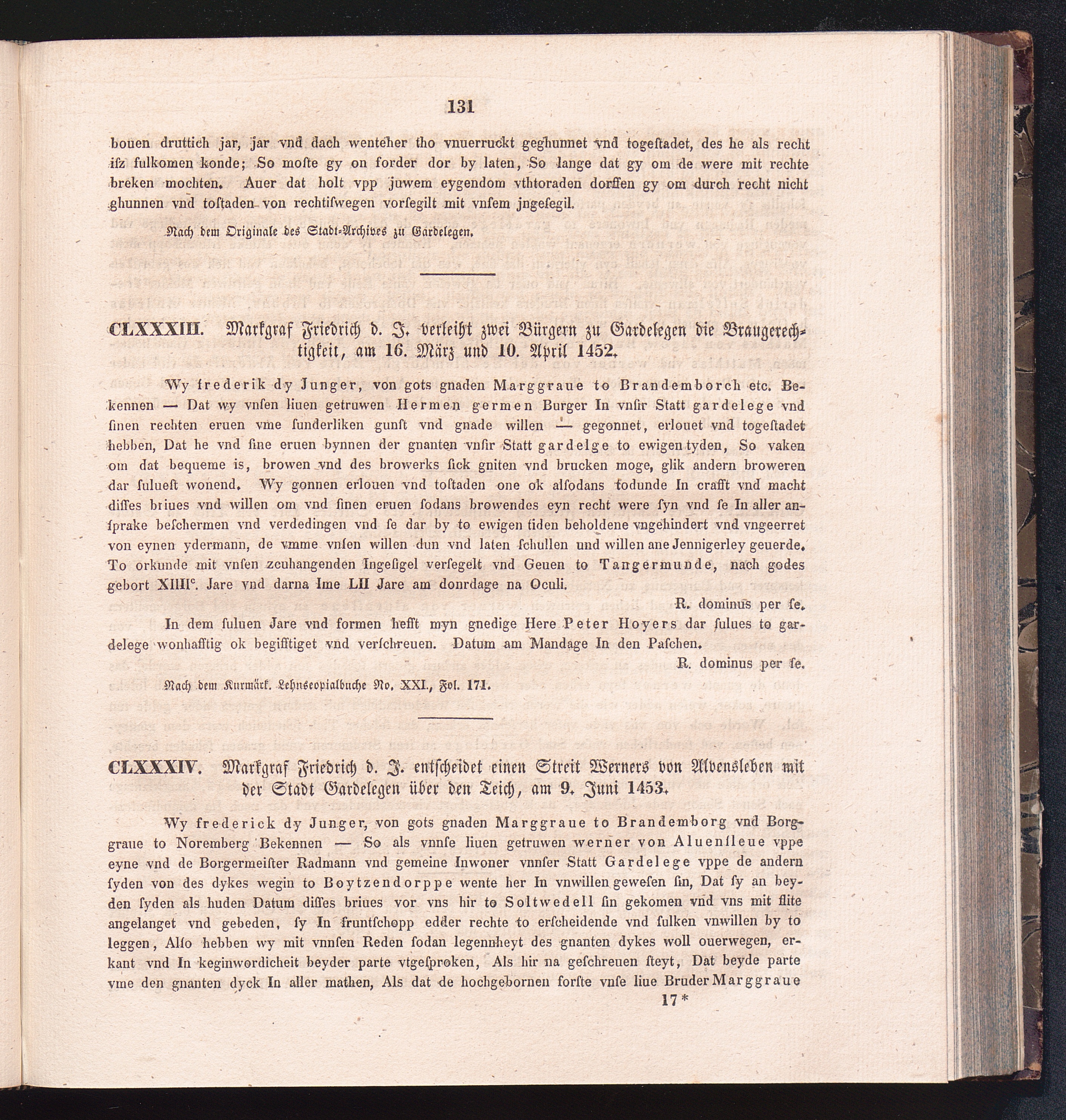 CLXXXIV. Markgraf Friedrich d. J. entscheidet einen Streit Werners von Alvensleben[...]