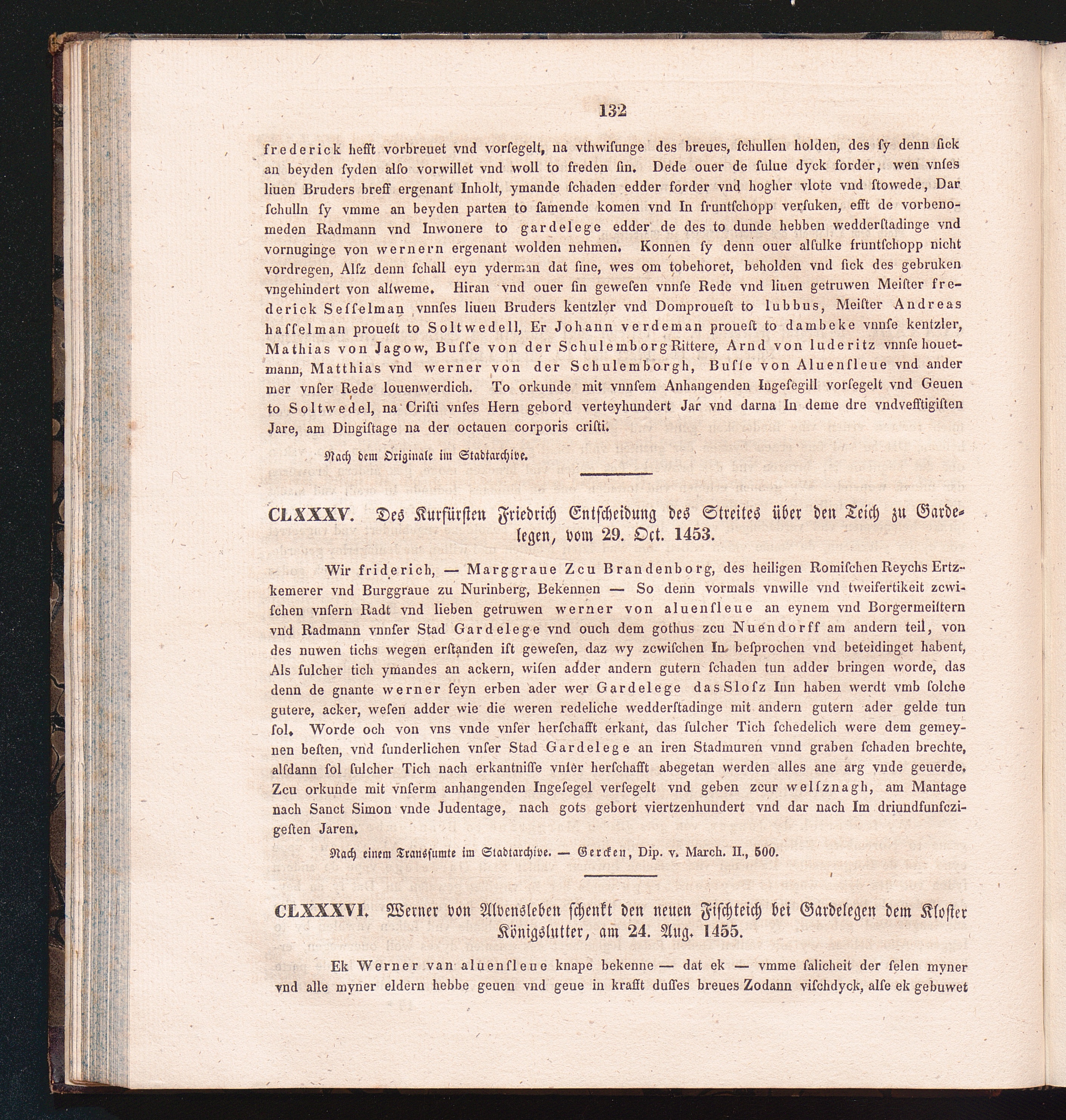 CLXXXVI. Werner von Alvensleben schenkt den neuen Fischteich bei Gardelegen dem Kloster[...]