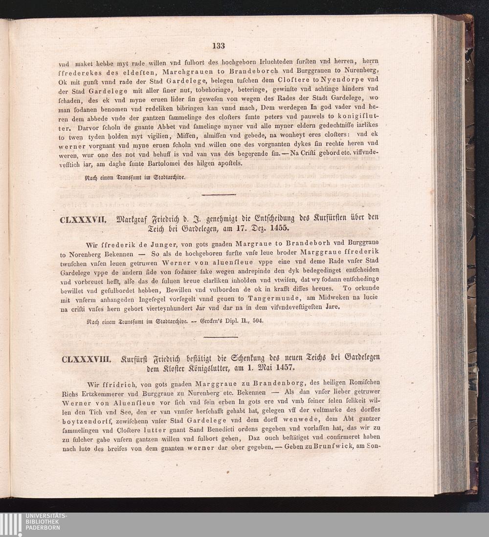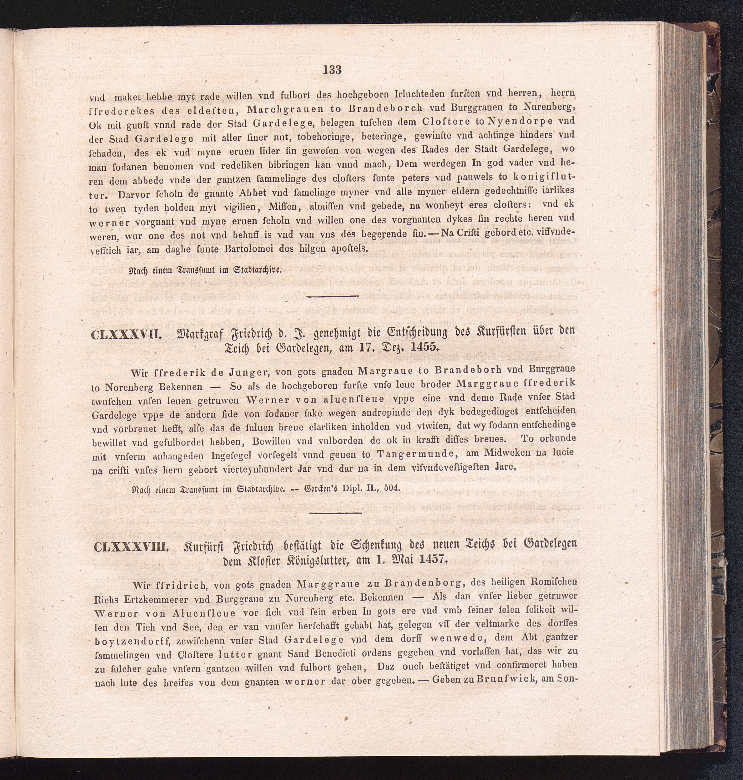 CLXXXVIII. Kurfürst Friedrich bestätigt die Schenkung des neuen Teichs bei Gardelegen[...]