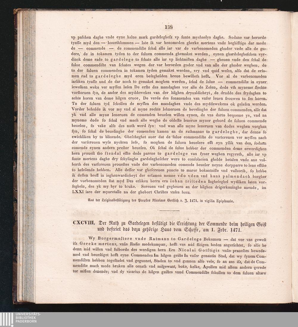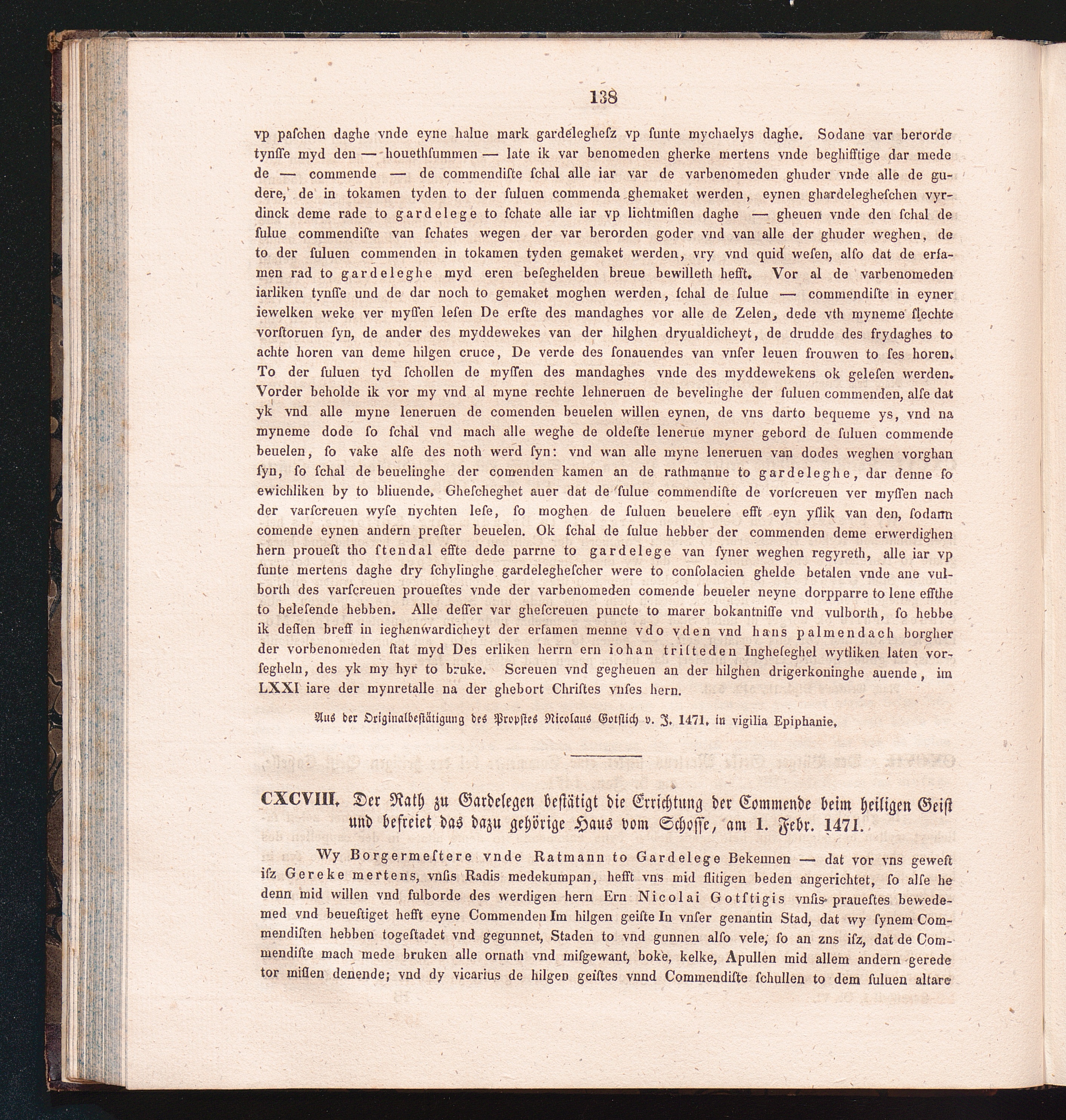 CXCVIII. Der Rath zu Gardelegen bestätigt die Errichtung der Commende beim heiligen[...]