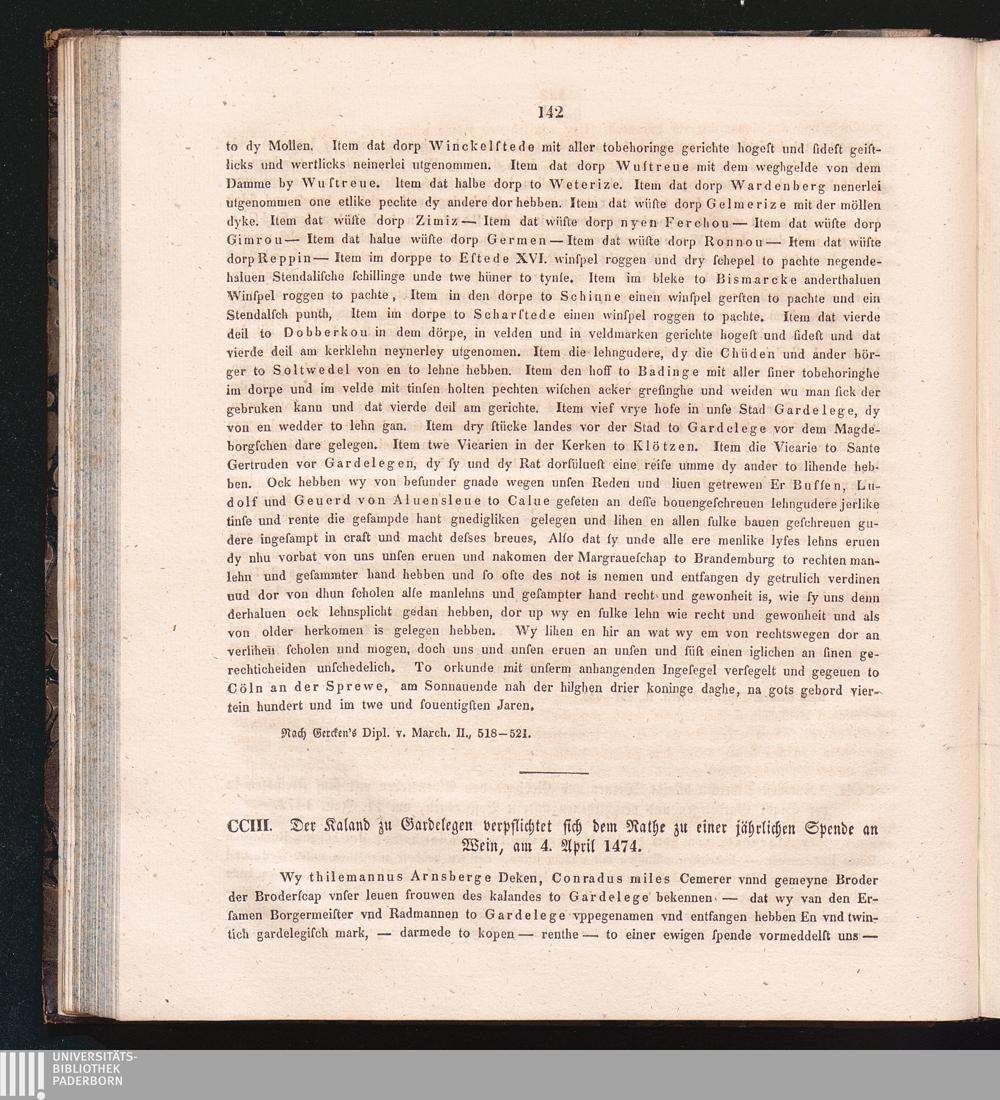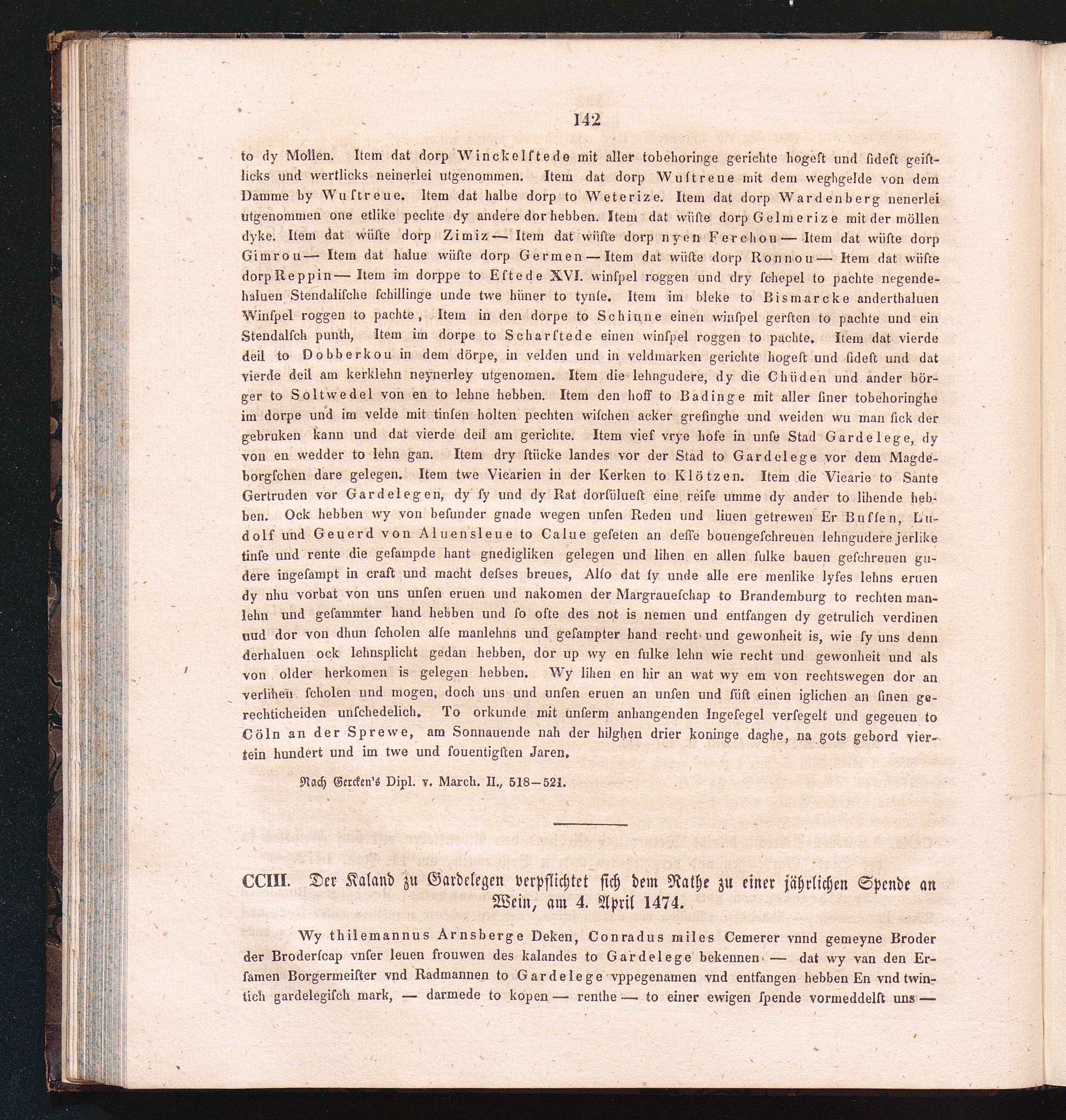 CCIII. Der Kaland zu Gardelegen verpflichtet sich dem Rathe zu einer jährlichen Spende[...]