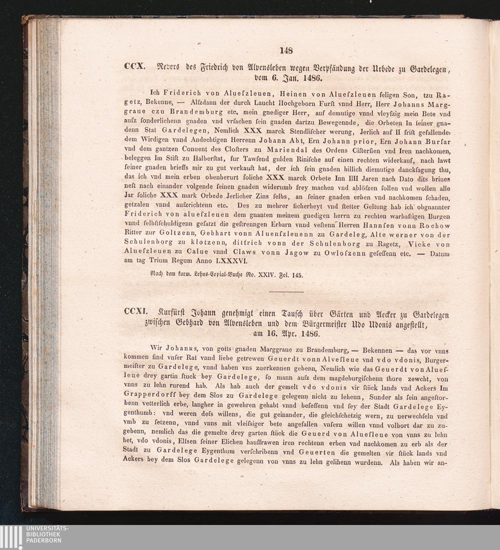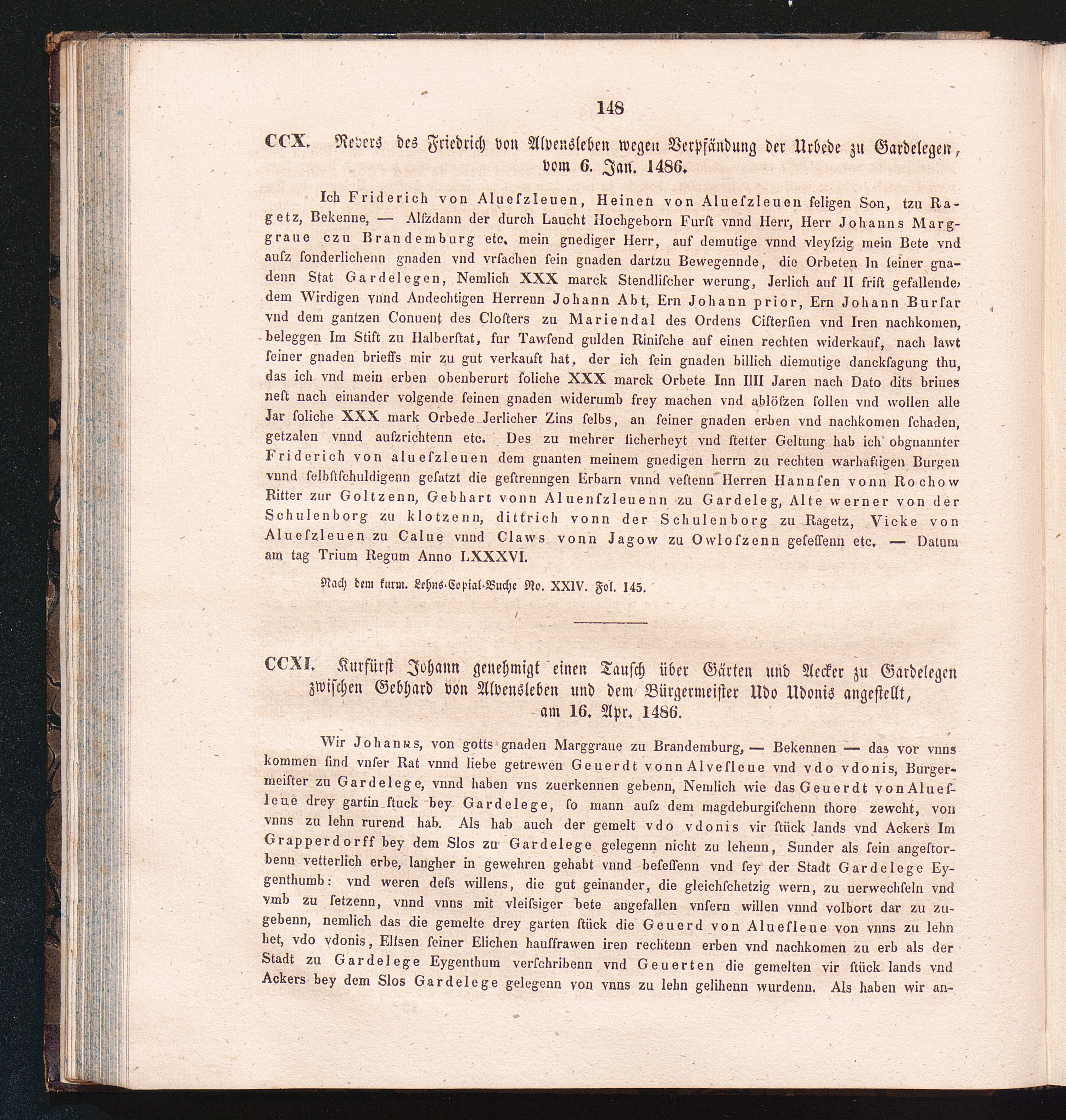 CCXI. Kurfürst Johann genehmigt einen Tausch über Gärten und Aecker zu Gardelegen[...]