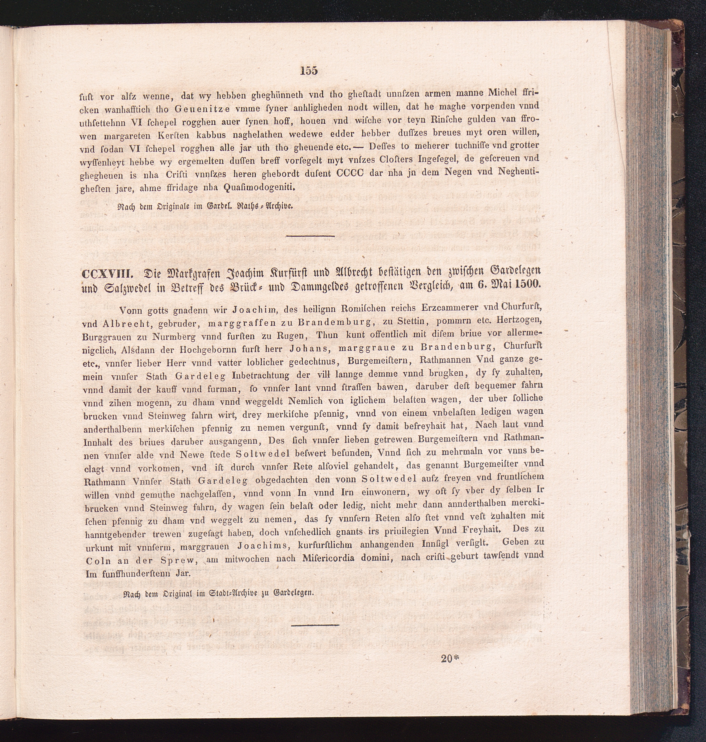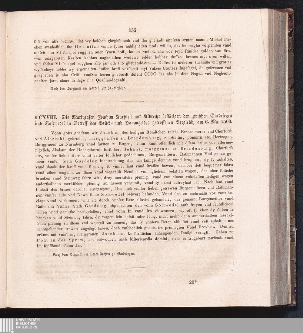 CCXVIII. Die Markgrafen Joachim Kurfürst und Albrecht bestätigen den zwischen Gardelegen[...]