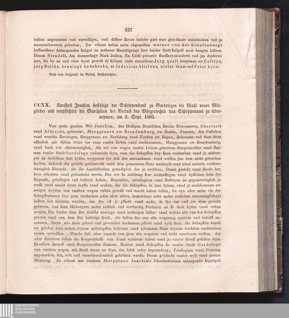 CCXX. Kurfürst Joachim bestätigt der Schöppenbank zu Gardelegen die Wahl neuer Mitglieder[...]