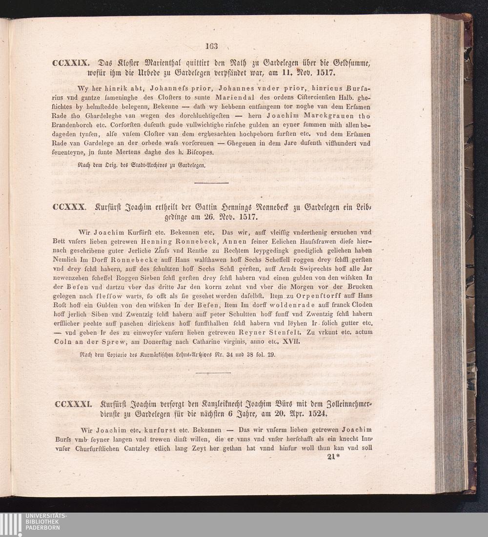 CCXXXI. Kurfürst Joachim versorgt den Kanzleiknecht Joachim Bürs mit dem Zolleinnehmerdienste[...]