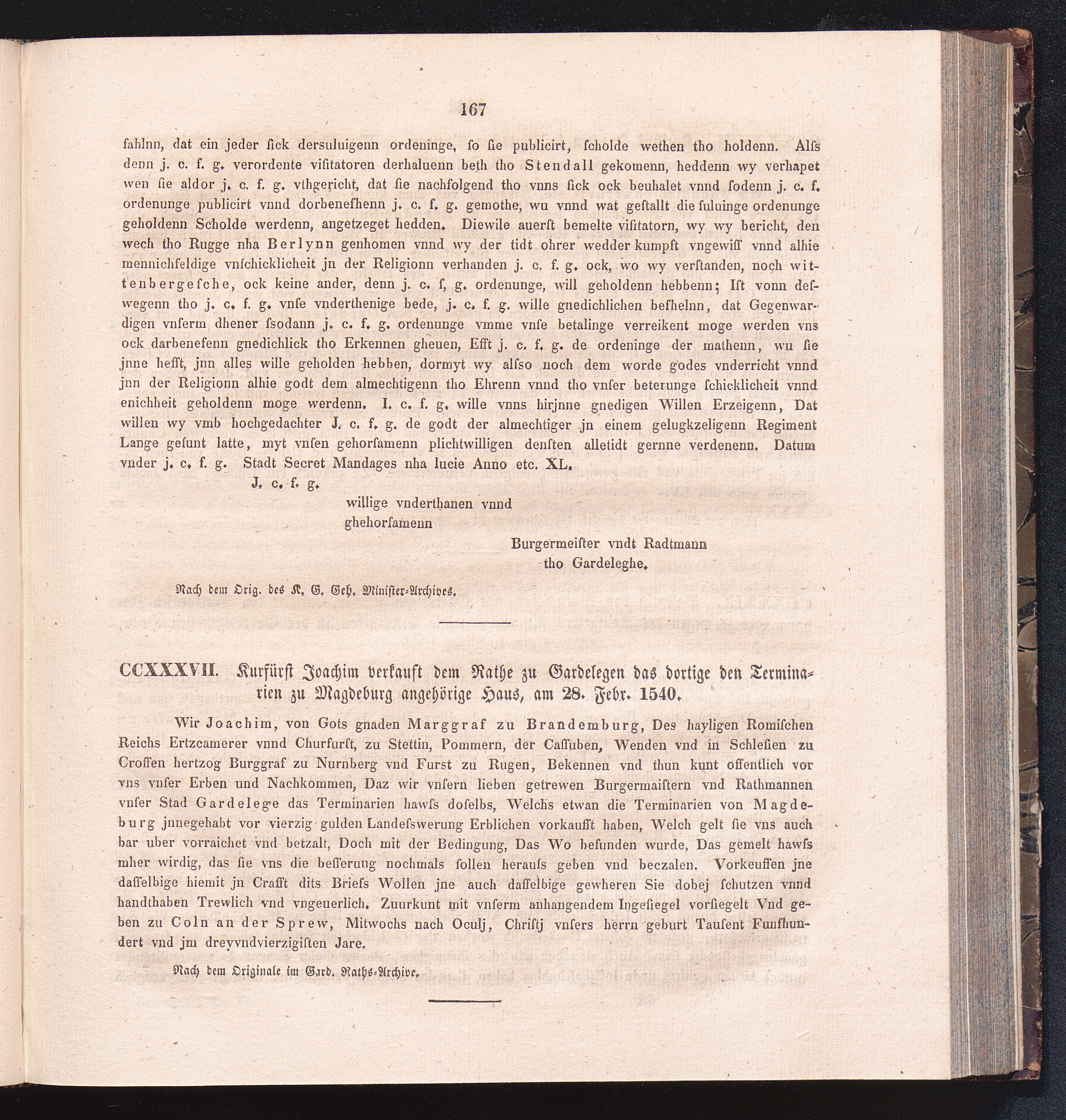 CCXXXVII. Kurfürst Joachim verkauft dem Rathe zu Gardelegen das dortige den Terminarien[...]