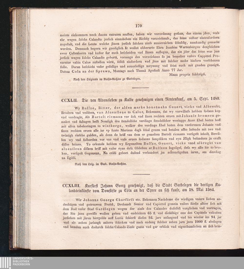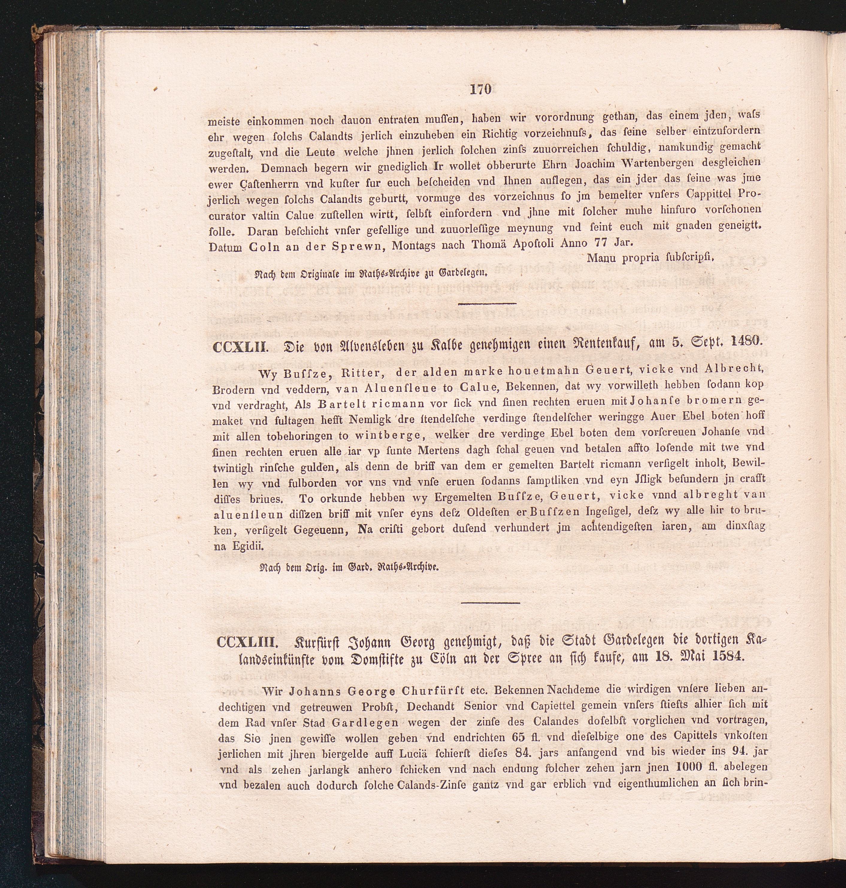 CCXLIII. Kurfürst Johann Georg genehmigt, daß die Stadt Gardelegen die dortigen Kalandseinkünfte[...]