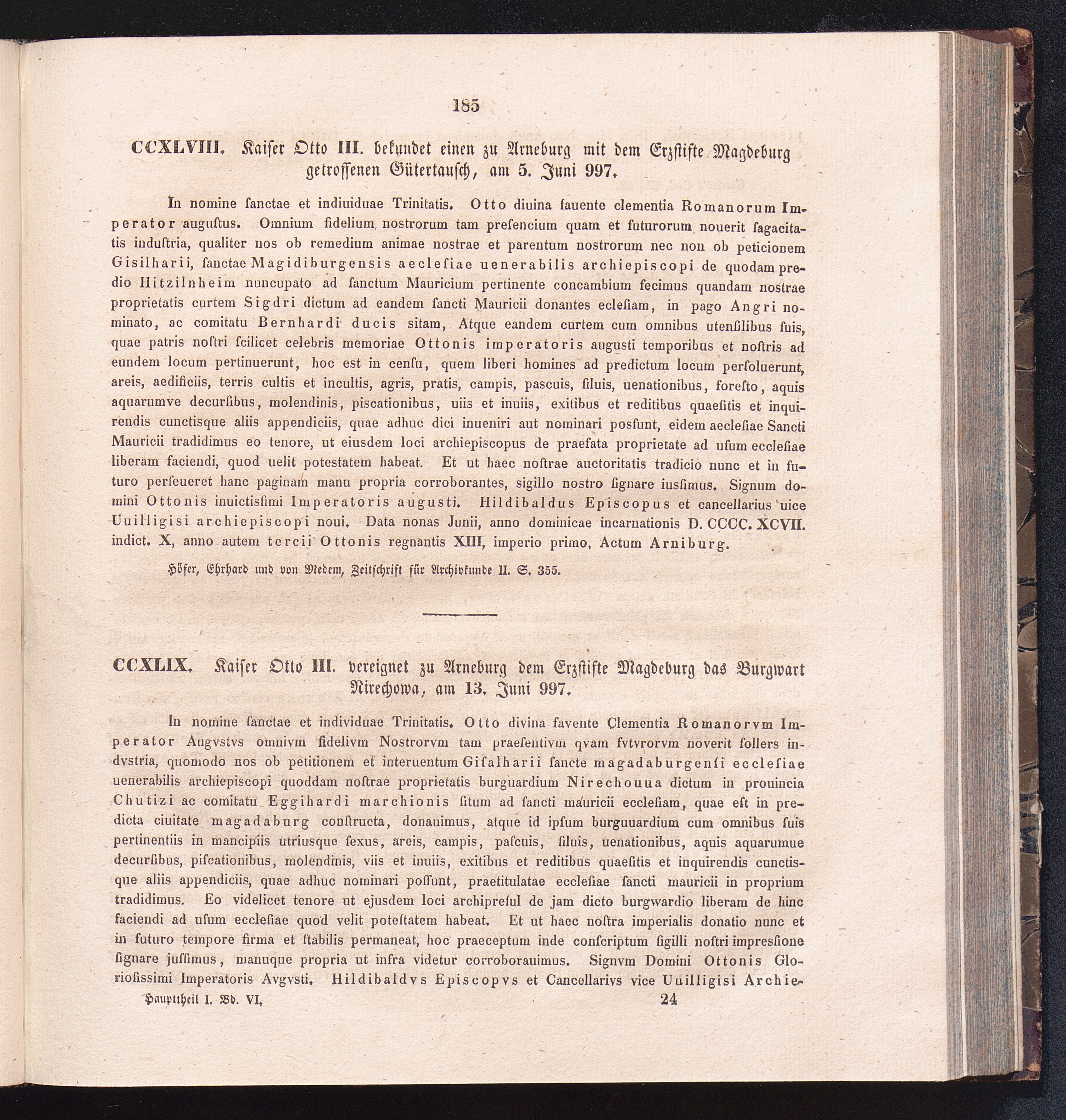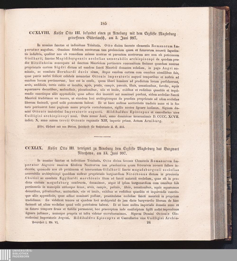 CCXLIX. Kaiser Otto III. vereignet zu Arneburg dem Erzstifte Magdeburg das Burgwart[...]