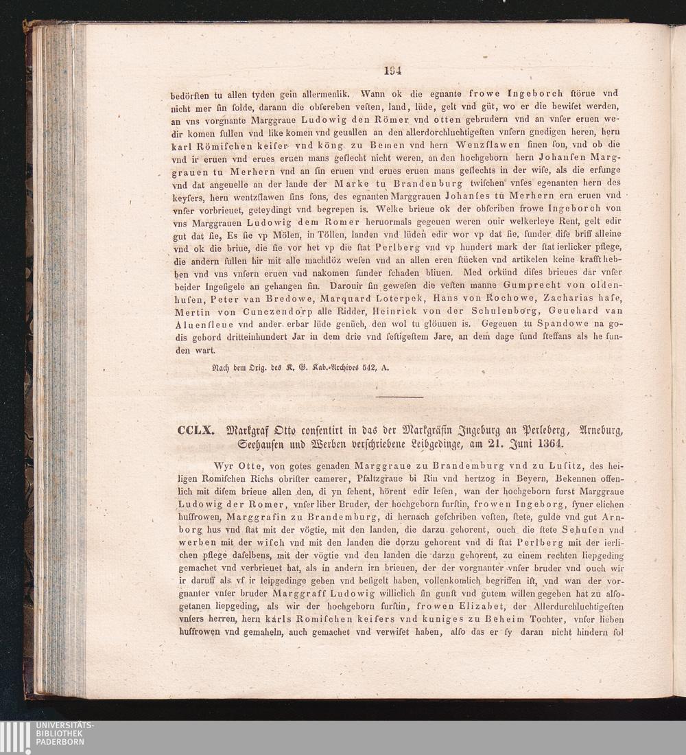 CCLX. Markgraf Otto consentirt in das der Markgräfin Ingeburg an Perleberg, Arneburg,[...]