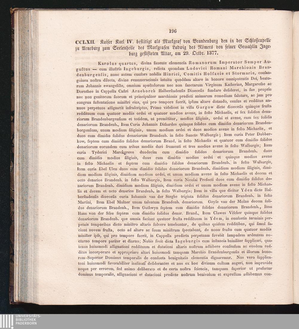 CCLXII. Kaiser Karl IV. bestätigt als Markgraf von Brandenburg den in der Schloßcapelle[...]