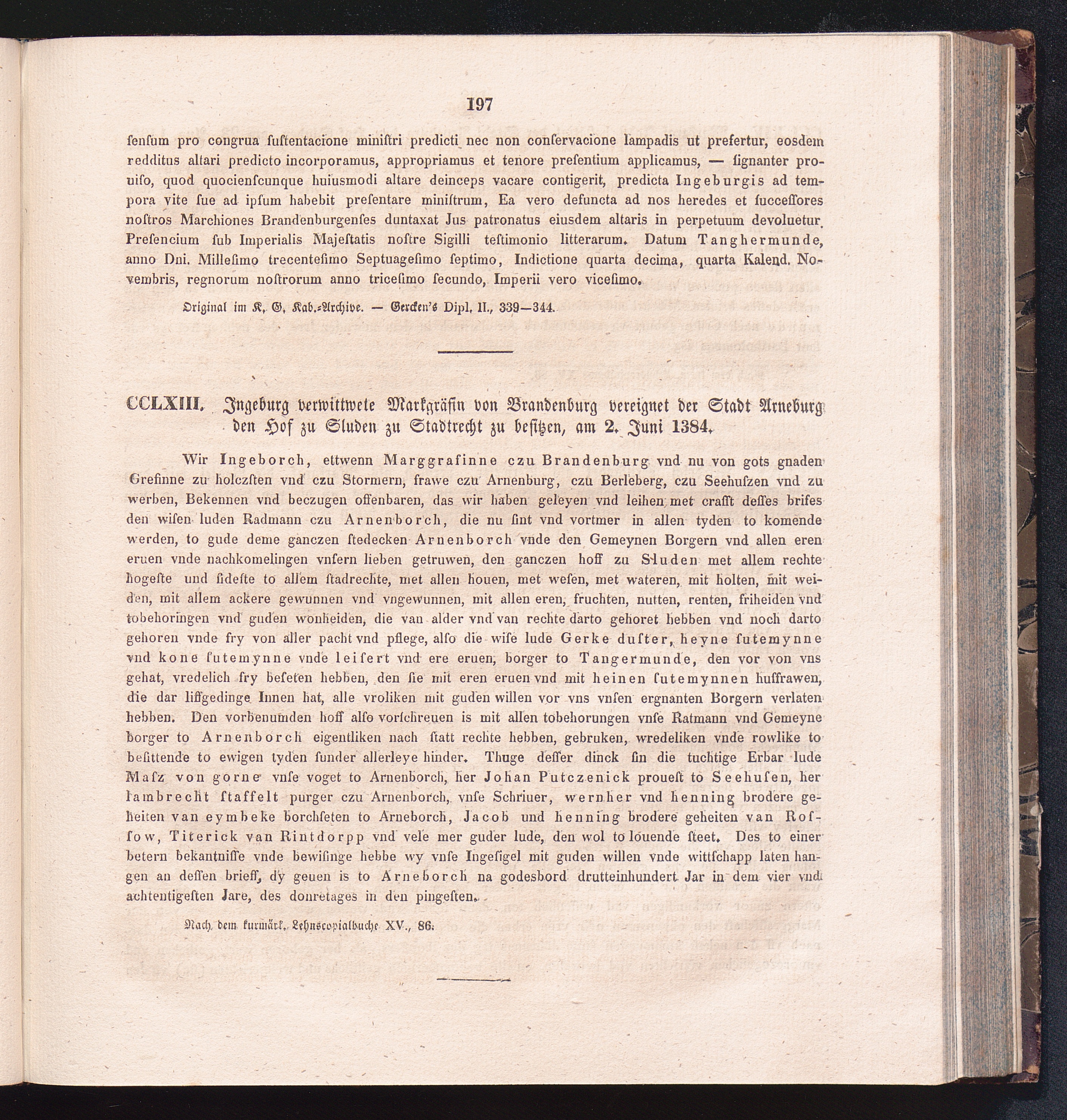 CCLXIII. Ingeburg verwitwete Markgräfin von Brandenburg vereignet der Stadt Arneburg[...]
