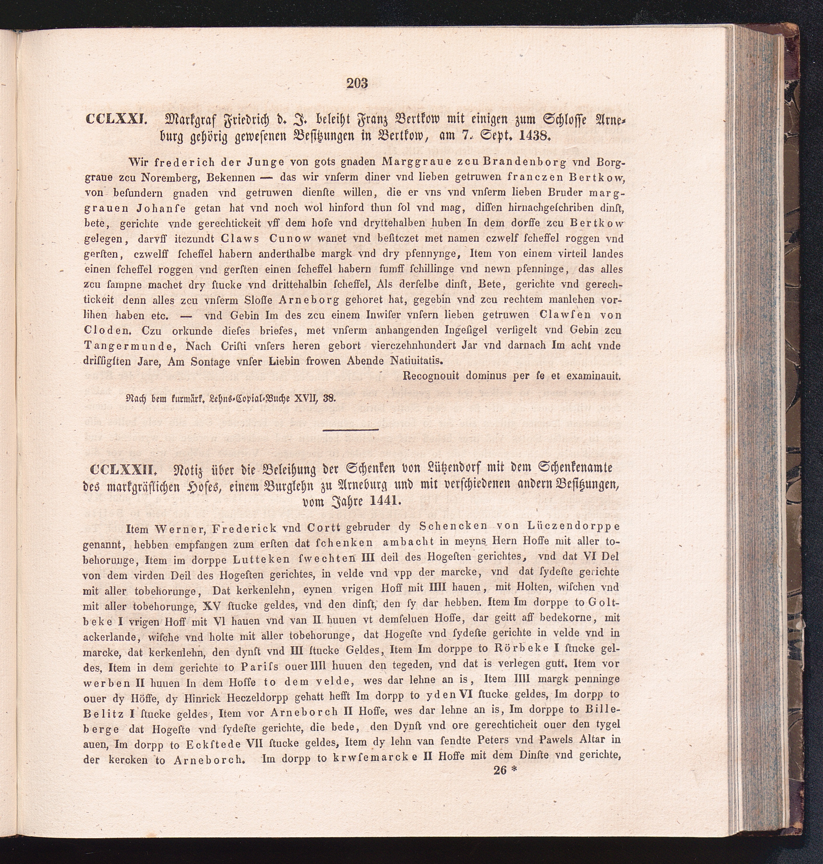CCLXXII. Notiz über die Beleihung der Schenken von Lützendorf mit dem Schenkenamte[...]