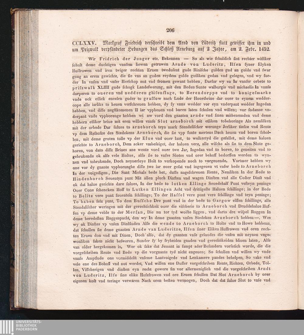 CCLXXV. Markgraf Friedrich verschreibt dem Arnd von Lüderitz statt gewisser ihm in[...]