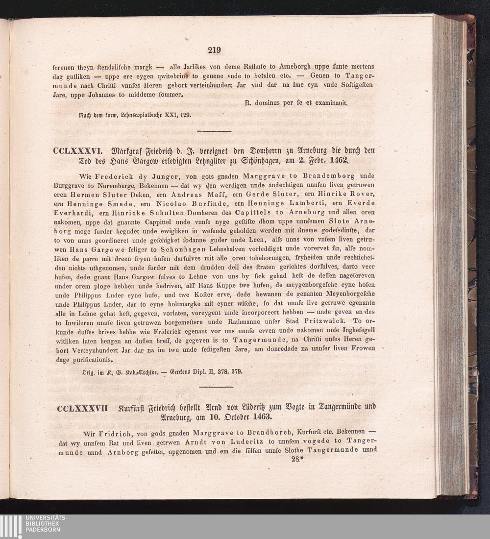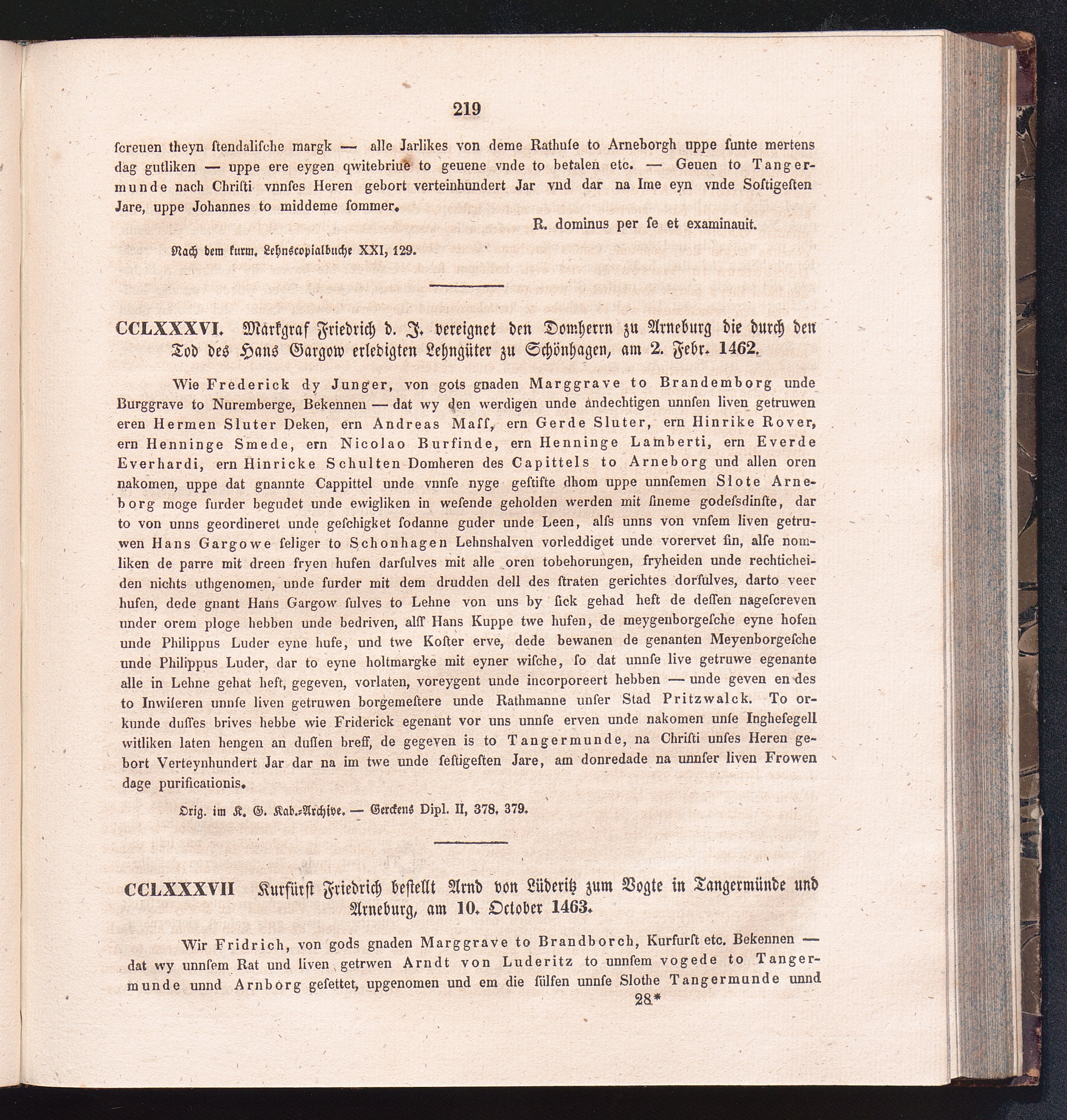 CCLXXXVII. Kurfürst Friedrich bestellt Arnd von Lüderitz zum Vogte in Tangermünde[...]
