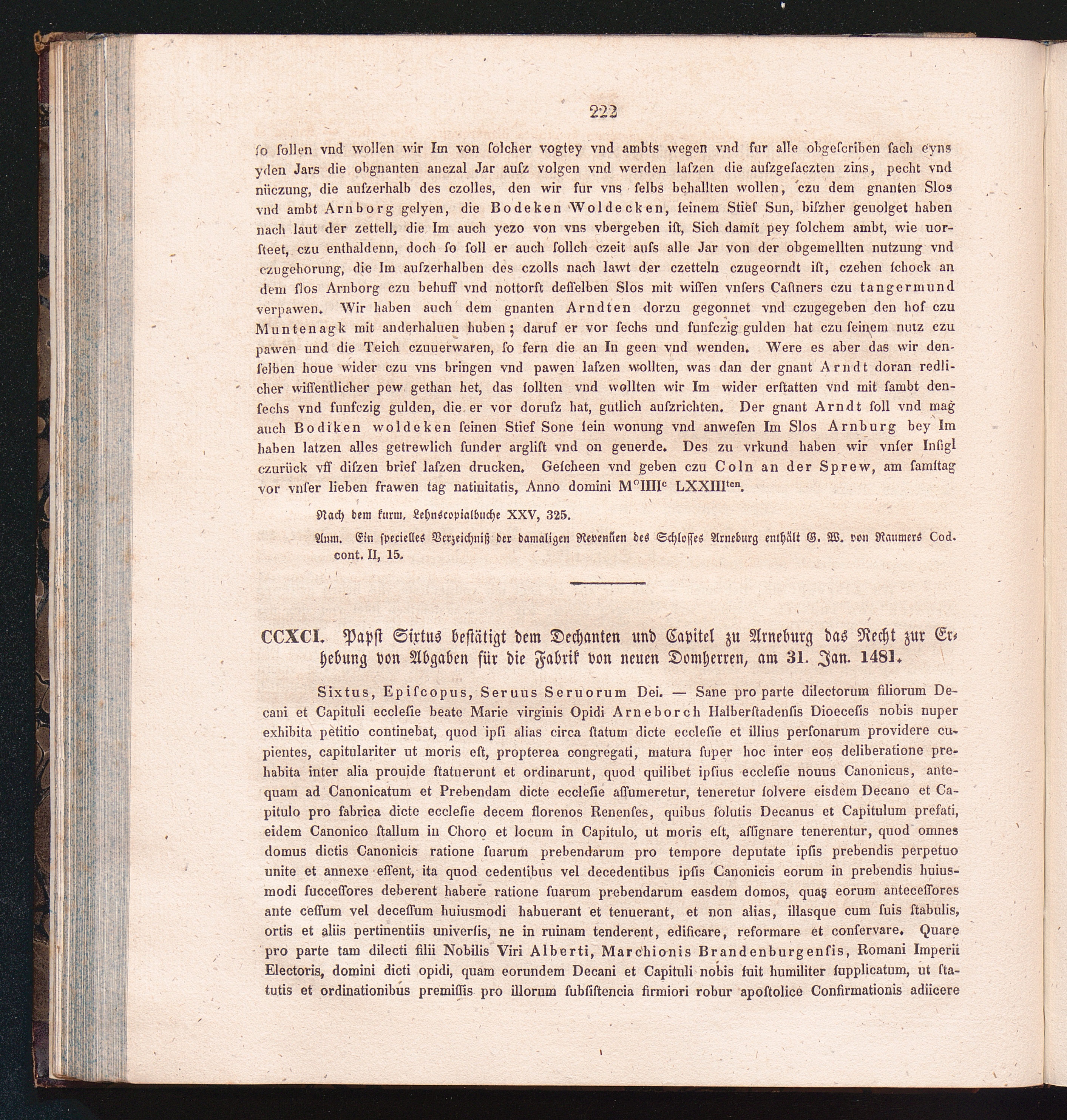 CCXCI. Papst Sixtus bestätigt dem Dechanten und Capitel zu Arneburg das Recht zur[...]