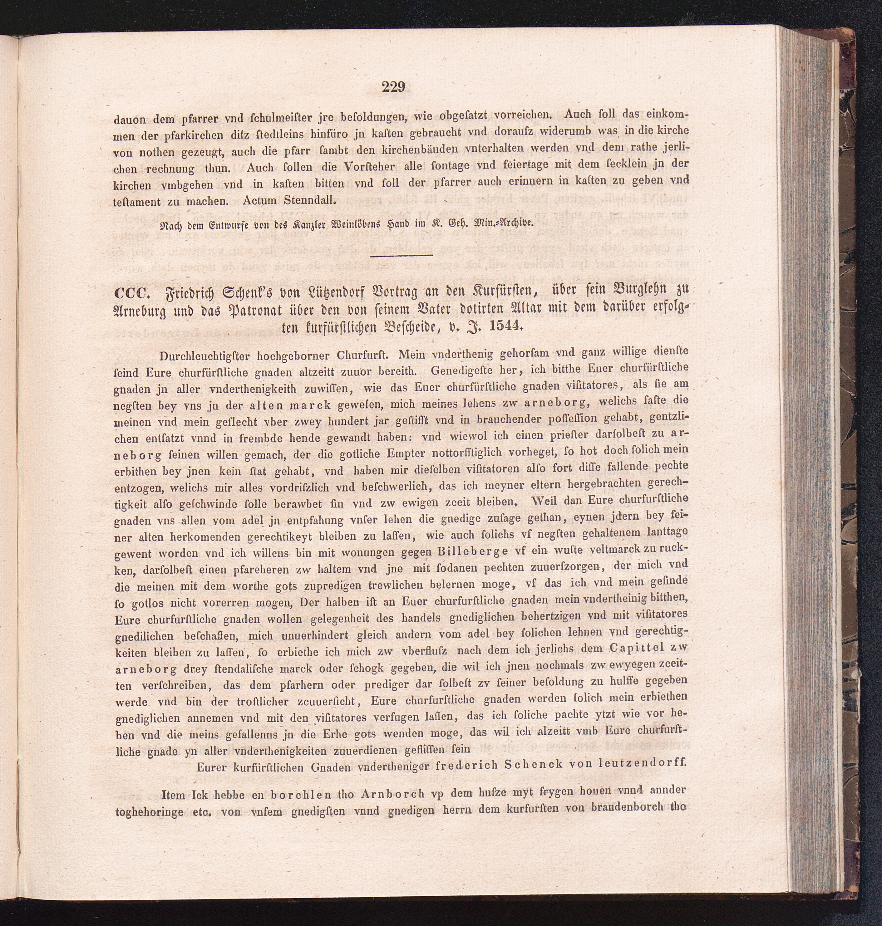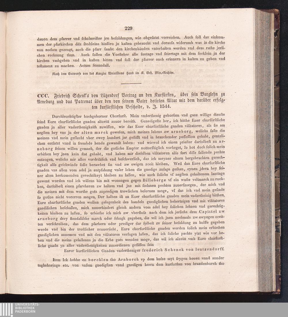 CCC. Friedrich Schenk`svon Lützendorf Vortrag an den Kurfürsten, über sein Burglehn[...]
