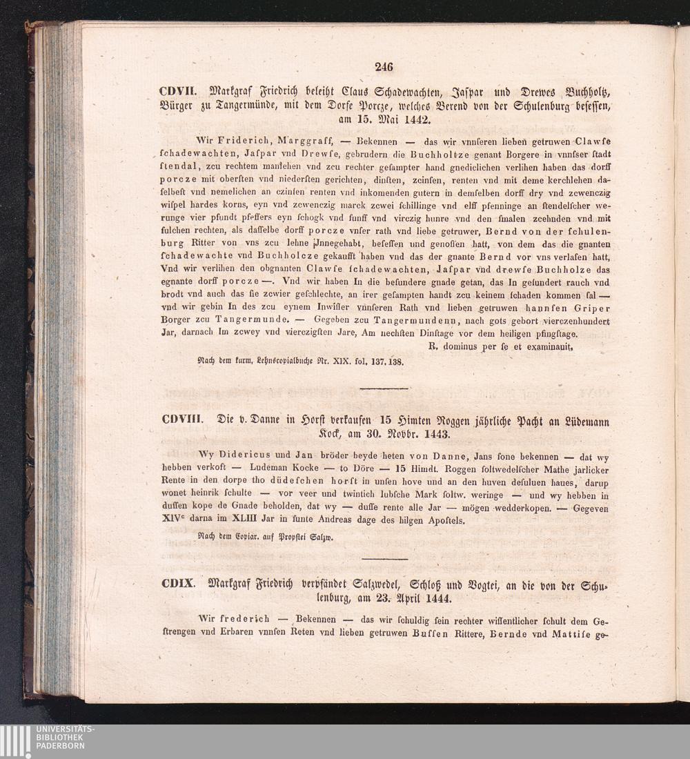 CDIX. Markgraf Friedrich verpfändet Salzwedel, Schloß und Vogtei, an die von der[...]