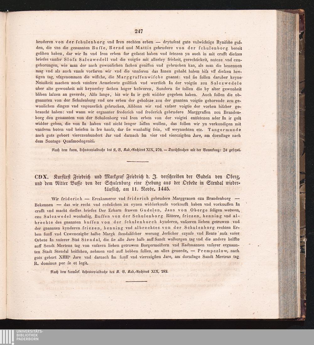 CDX. Kurfürst Friedrich und Markgraf Friedrich d. J. verschreiben der Gudela von[...]