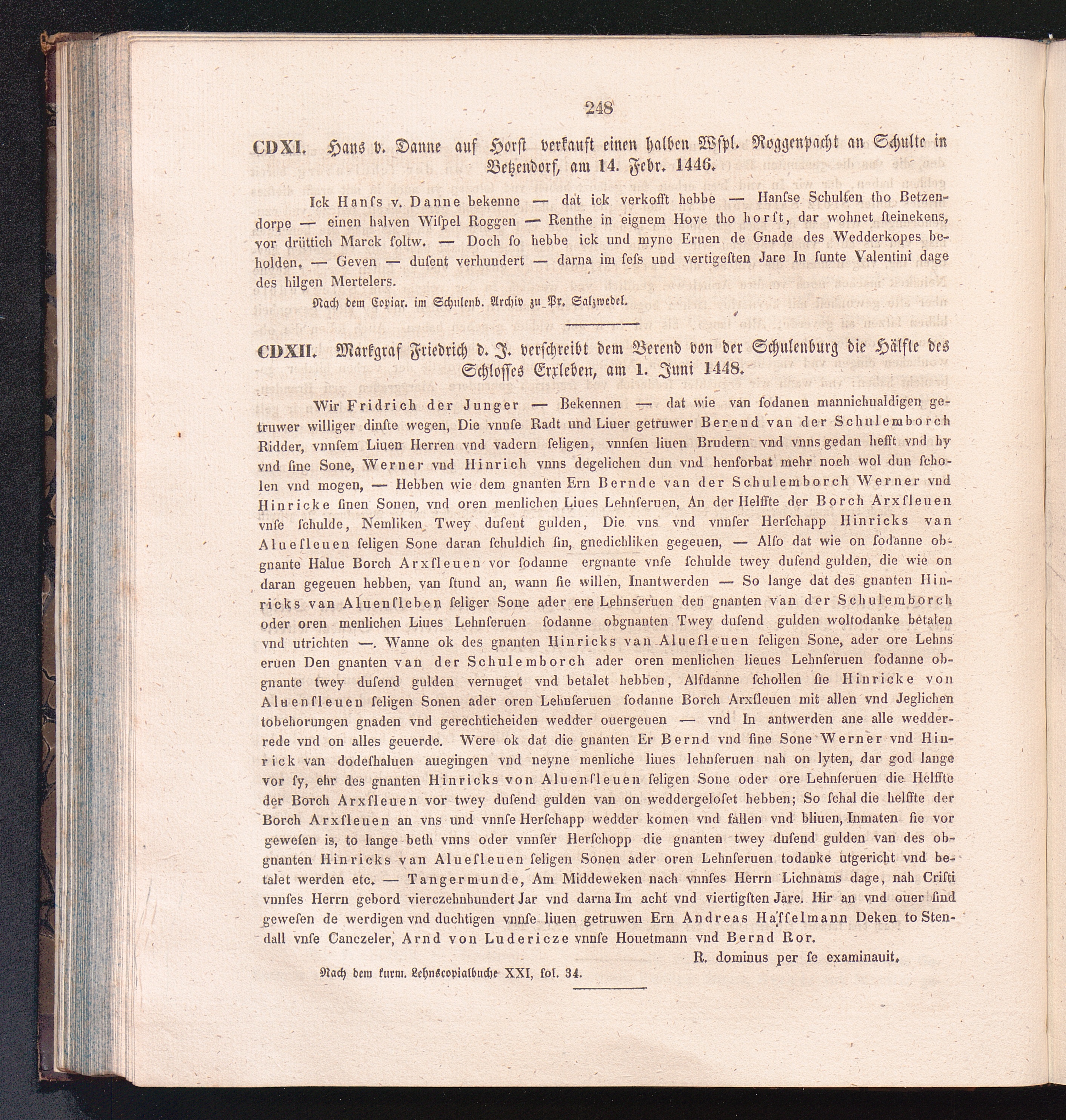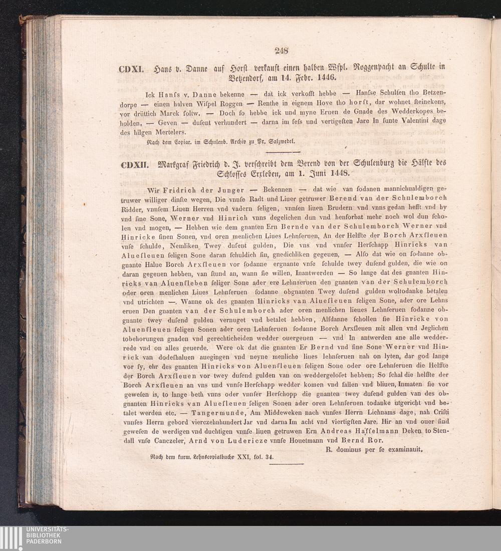 CDXII. Markgraf Friedrich d. J. verschreibt dem Berend von der Schulenburg die Hälfte[...]