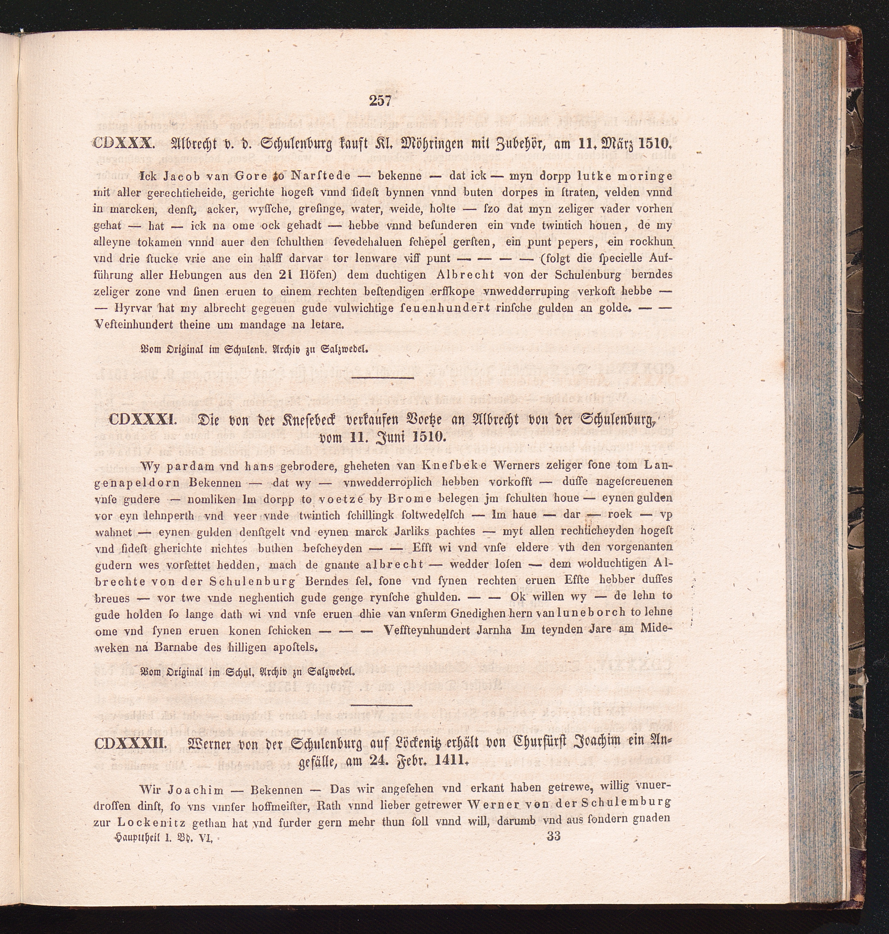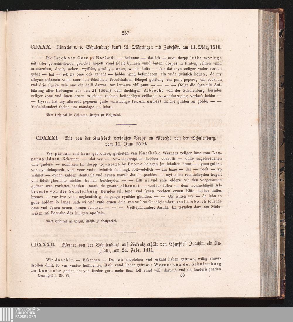 CDXXXII. Werner von der Schulenburg auf Löckenitz erhält von Churfürst Joachim ein[...]